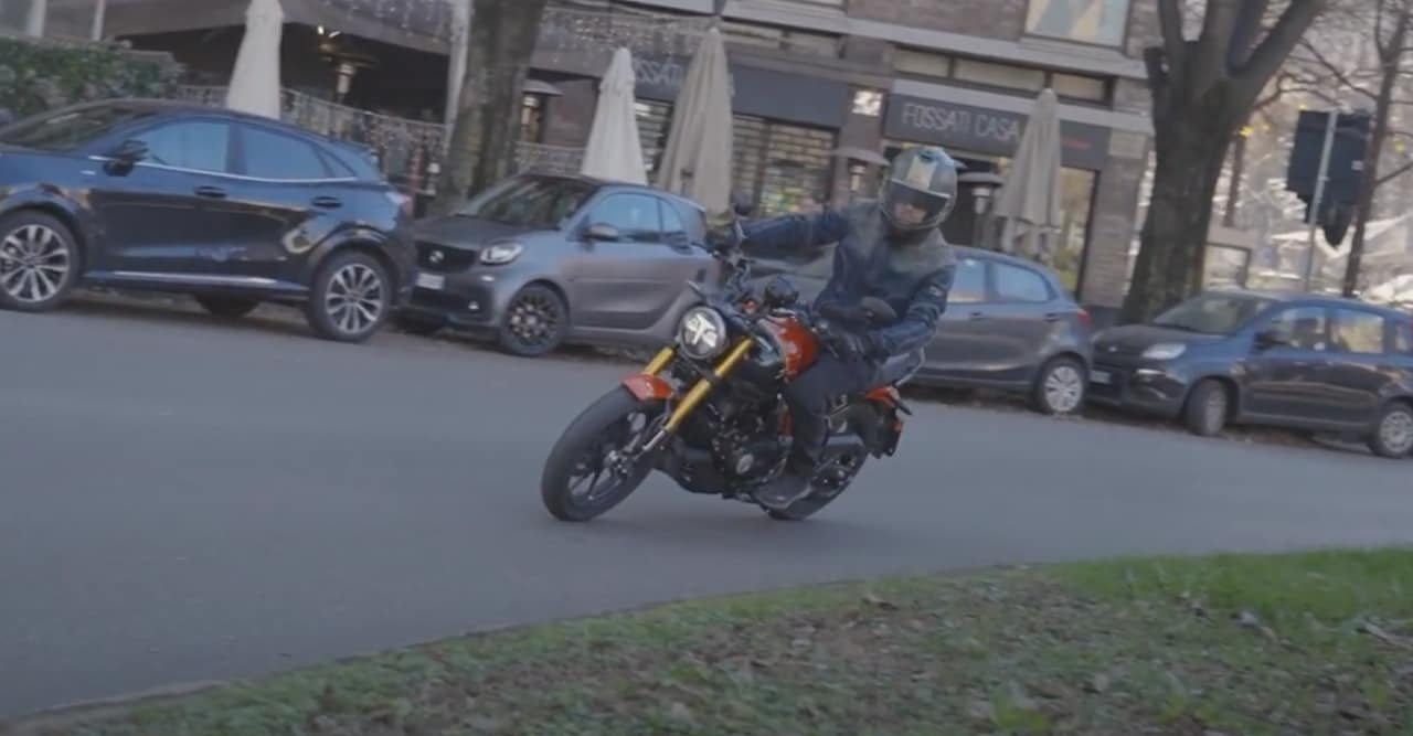 La Ronin 250 ricorda le scrambler nella forma, ma adotta soluzioni “alternative” per renderla pratica al massimo. Oltre ai dettagli estetici già elencati, la sua particolare posizione in sella ha un che di stupefacente. L’altezza da terra è nella media (795 mm) e consente a tutti di poggiare facilmente i piedi per terra, le braccia invece scendono molto, sul manubrio che è basso ma alla giusta distanza. E poi le pedane, che cerchi più indietro rispetto alla loro vera posizione. Quando ti siedi sembra di stare su una sedia per la curva che fanno le gambe, è una posizione poco votata alle prestazioni quanto al comfort. A rendere la Ronin 250 ancora più facile è il peso di appena 160 kg che consentono di spostarla senza fare alcuna fatica.