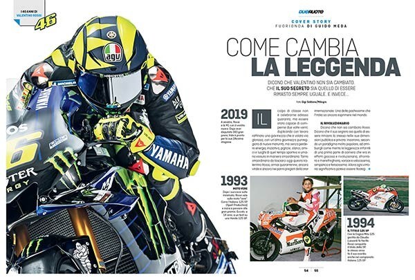 Il n. 167 Marzo 2019 di Dueruote dedica la copertina a Valentino Rossi che, in concomitanza con l’uscita del nostro giornale, compie 40 anni. Per l’occasione trovate le interviste alle persone più vicine al campione di Tavullia, dal Managing Director Yamaha Lin Jarvis al fotografo “personale” Gigi Soldano, passando per il vicedirettore di Sky Sport e commentatore della MotoGP, Guido Meda, il designer e ideatore delle grafiche dei caschi di Rossi, Aldo Drudi, l’amministratore della VR46 Aberto Tebaldi e alcuni abitanti del paese d’origine. Non mancano poi le prove delle ultime novità lanciate sul mercato: potete così leggere delle rinnovate Ducati Hypermotard 950/950 SP, la nuova Triumph Street Twin, le piccole Yamaha YZF-R125 ed R3, le Honda CB650R e CBR650R, la Vespa Elettrica e la KTM 790 Duke smontata. A tema VR46 anche le sezioni Community, Showroom e Turismo, mentre nelle pagine dedicate allo Sport, gustatevi il resoconto della 41esima edizione della Dakar.
