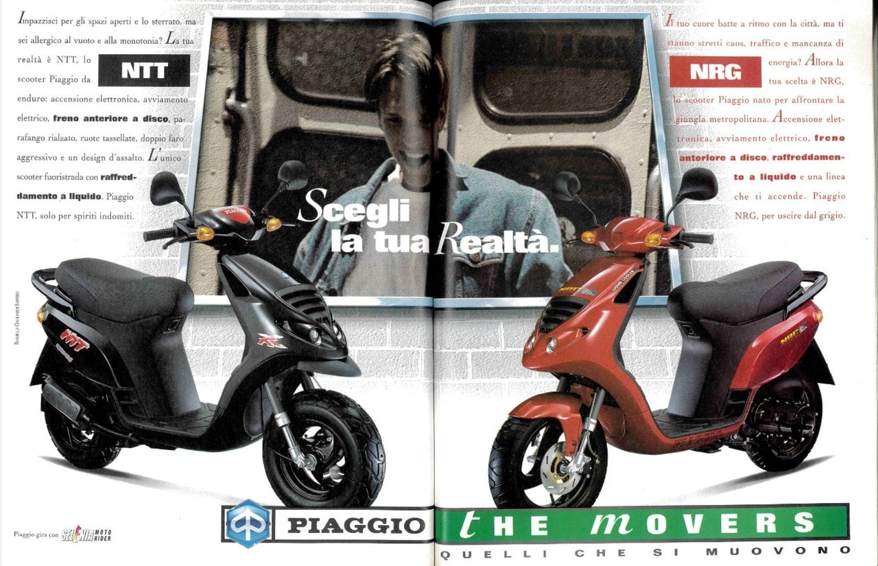 Nel 1994 Piaggio affianca alla Vespa, alla Sfera e allo Zip la sua interpretazione di scooter , l'NRG declinato anche nella variante offroad NTT. Una chicca? Aveva le ruote da 13" e la forcella a steli rovesciati. Il suo prezzo era di 3.880.000 lire.
