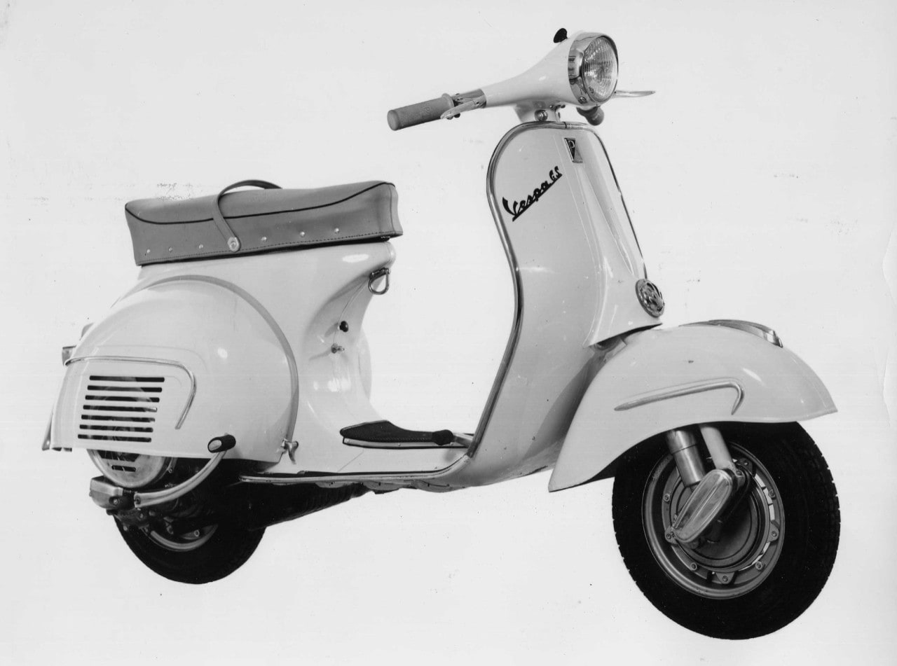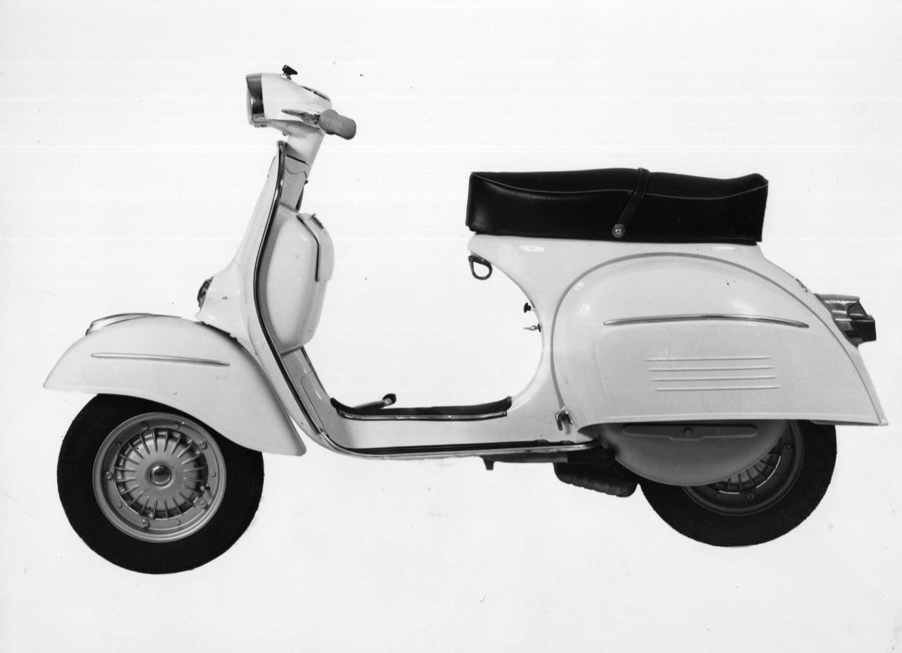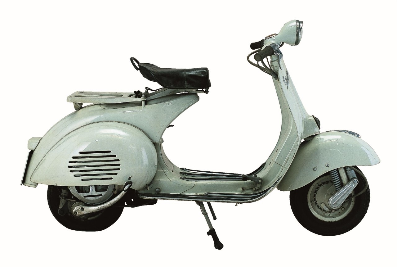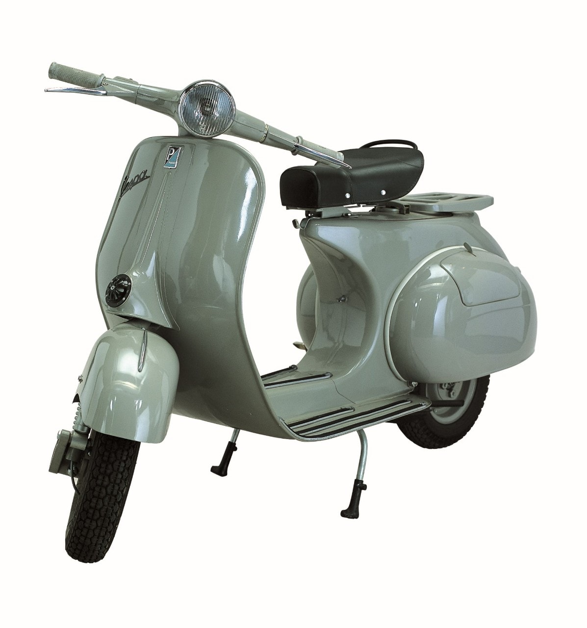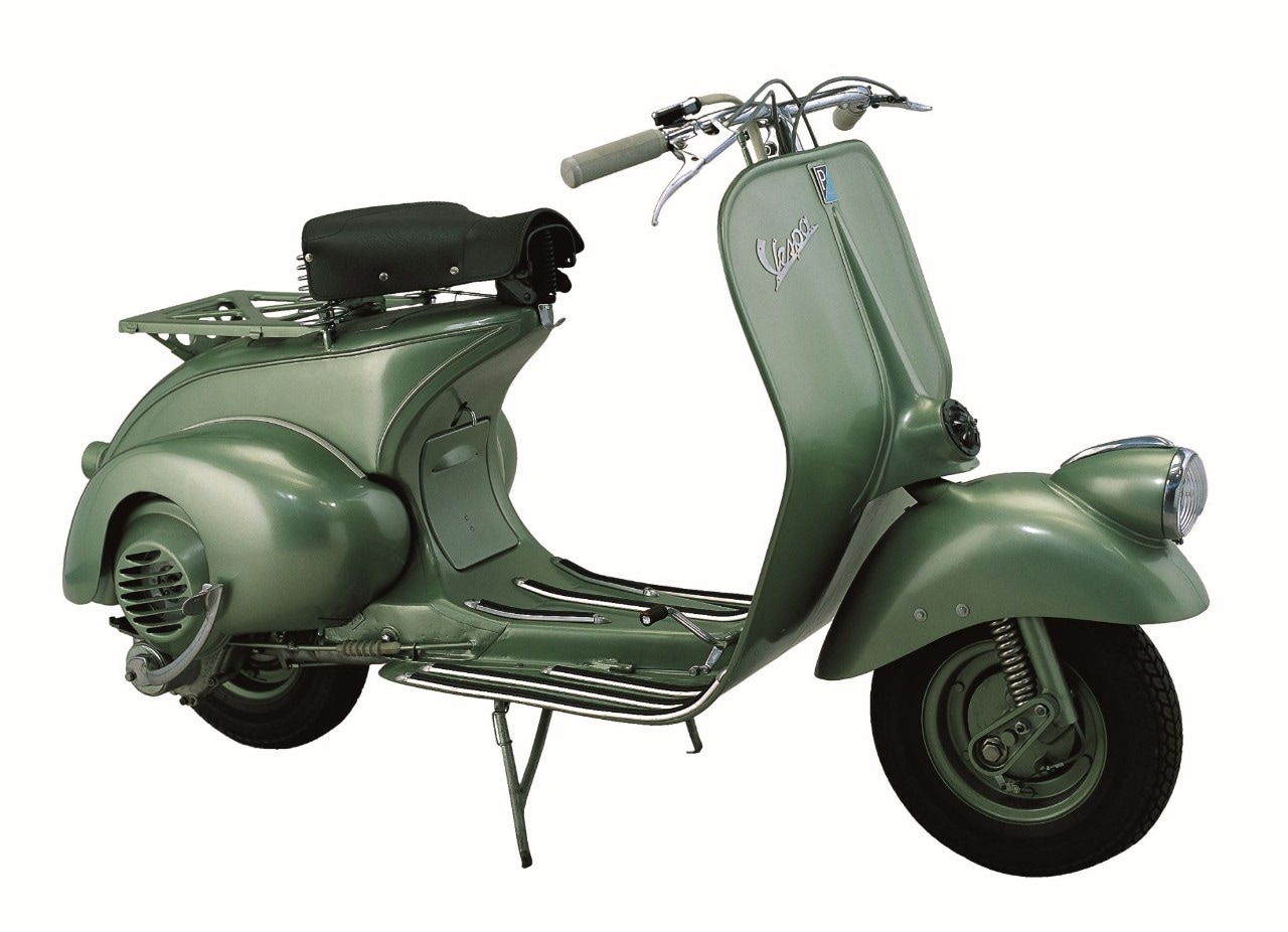 Prodotto a Pontedera nell’aprile del 1946. Il nome del veicolo fu coniato dallo stesso Enrico Piaggio che davanti al prototipo MP6, dalla parte centrale molto ampia per accogliere il guidatore e dalla “vita” stretta, esclamò: “Sembra una vespa!”. E Vespa fu