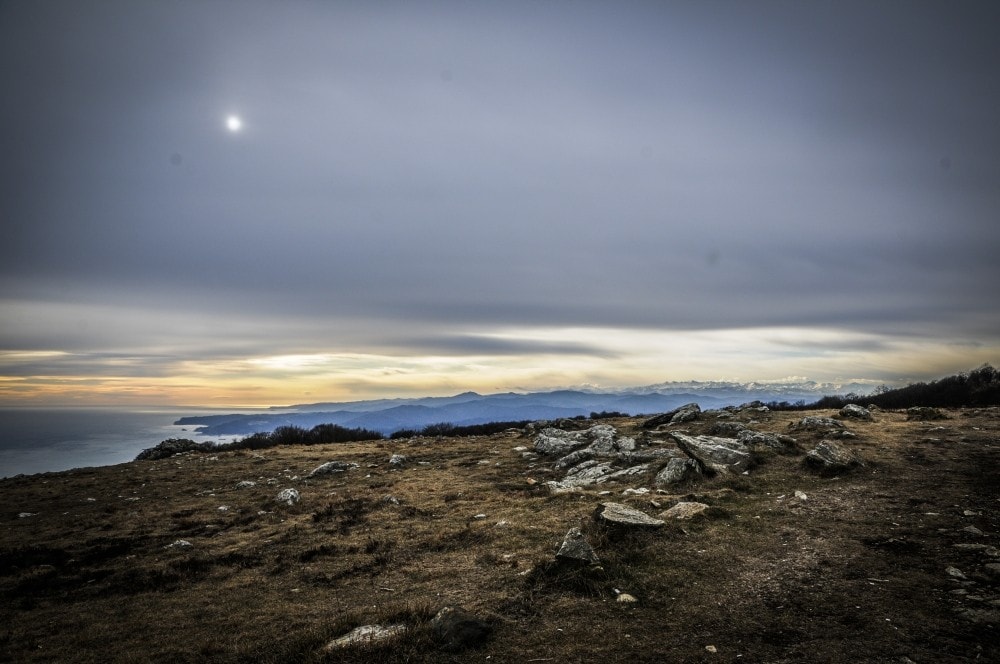 La vegetazione sparisce all'improvviso e si avanza in mezza costa in un ambiente brullo, spesso sferzato dal vento, dove il traffico è quasi del tutto assente. Qualche curva e si viaggia intorno ai 1.000 metri sul livello del mare, che è lì, appena sotto. Nelle giornate più limpide da qui si vede tutto il Levante ligure e si possono identificare i contorni della Corsica, mentre più vicino c'è il porto di Genova. Non è granché, ma bisogna accontentarsi di considerarlo un aperitivo, perché il meglio (come dice Ligabue) deve ancora venire.