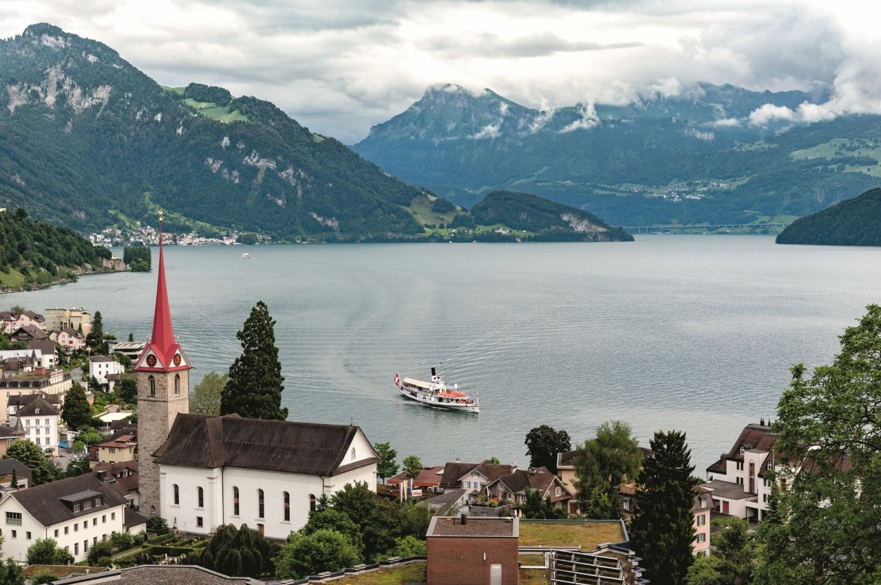 Il romantico castello di Meggen fa da belvedere: da qui la vista spazia su buona parte dell'arzigogolato lago dei Quatto Cantoni. Lucerna è là sotto ed è così perfetta, distesa tra l'acqua e le colline, da sembrare un giocattolo, un piccolo perfetto plastico di città.