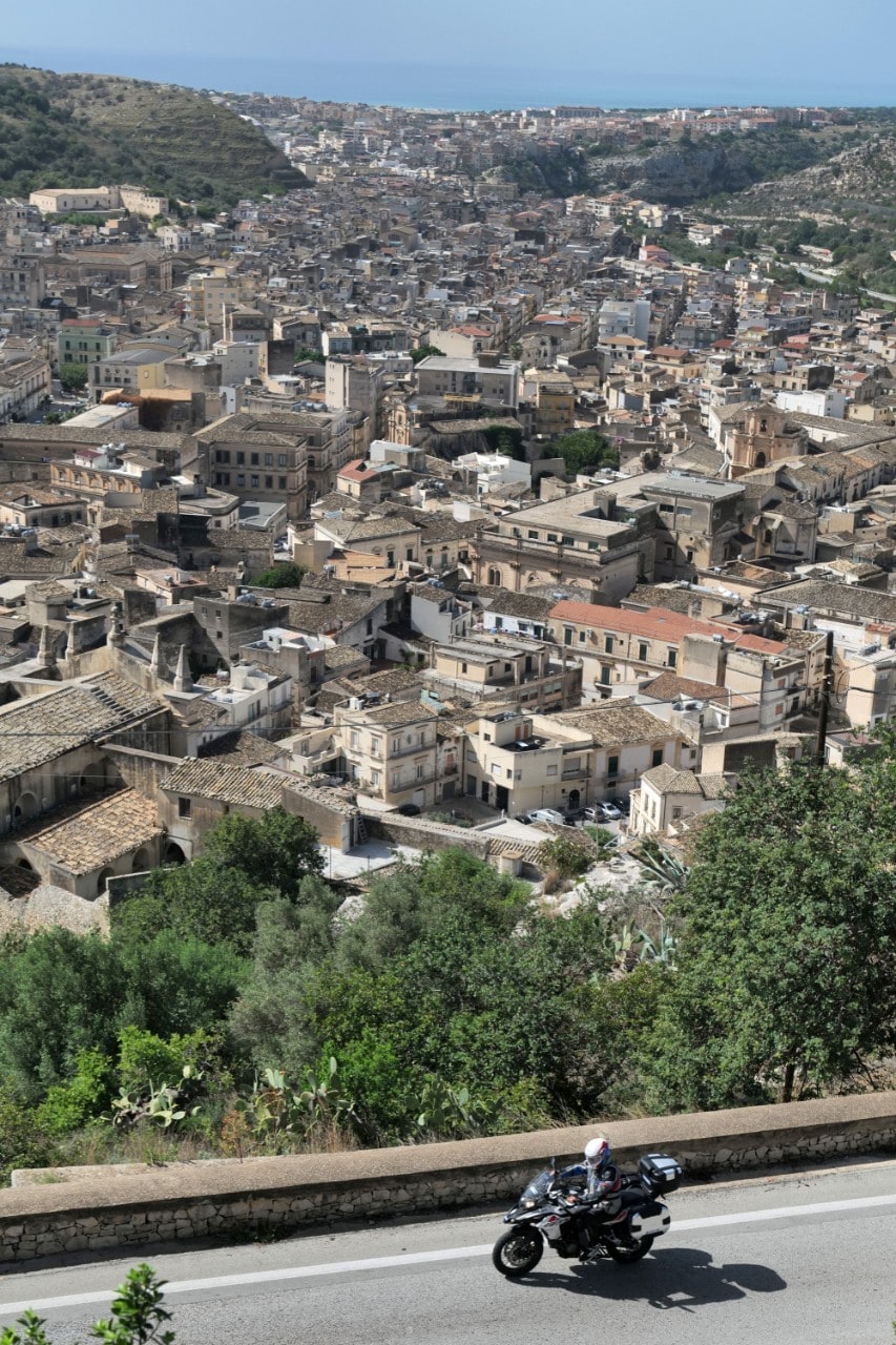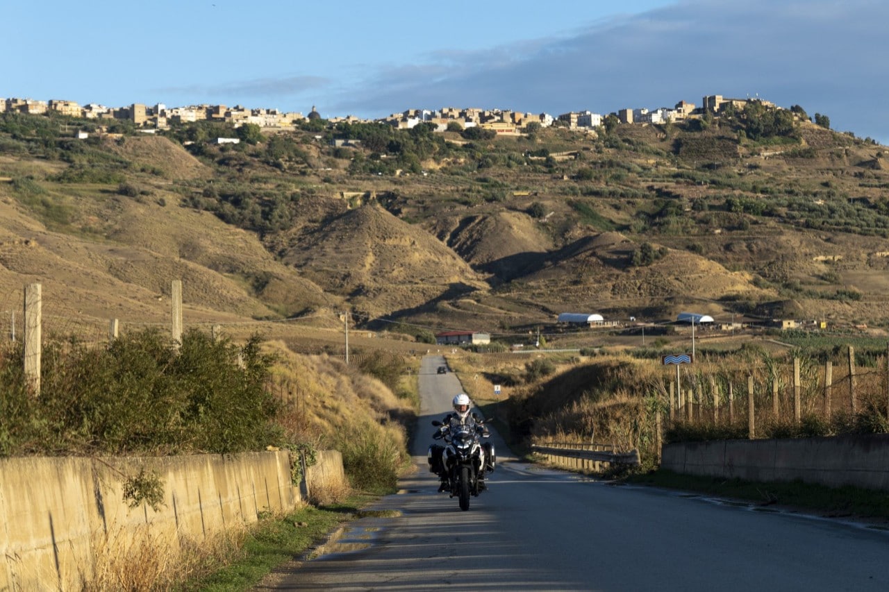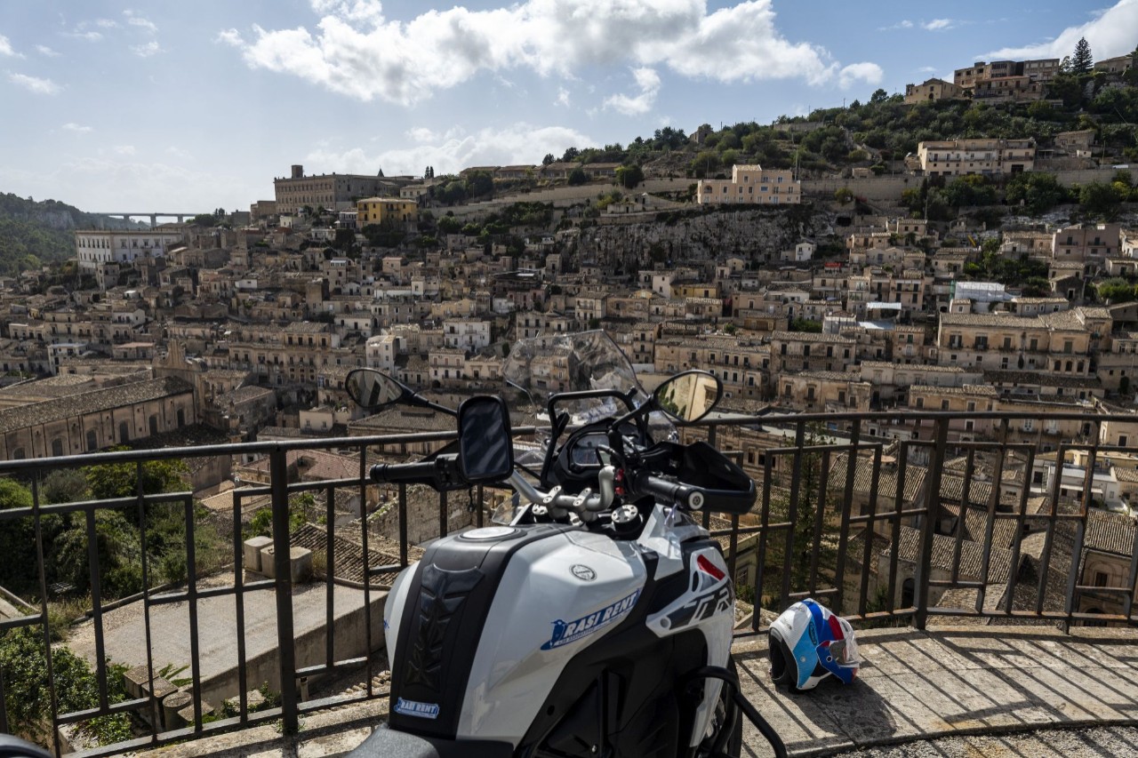L’incontro tra la possibilità di trovare una moto a noleggio e le tariffe estremamente vantaggiose delle compagnie low cost che fanno scalo oltre che su Palermo, Catania e Trapani sull’aeroporto di Comiso, rende questo viaggio ideale anche per “quella” settimanina di ferie da prendere a giugno o settembre, per esempio. Per il noleggio abbiamo scelto la RASI RENT auto moto & bike di Marina di Ragusa, che offre auto, motoe scooter, ma anche bici a pedalata assistita e city bike. Per il nostro viaggio ci è stata messa a disposizione una fiammante Benelli TRK 502 X dotata di tre borse rigide, con la quale abbiamo percorso più di mille km. Ed è stata una vera e propria sorpresa, ad iniziare dall’abitabilità e dalla posizione di guida veramente comoda anche in due con bagaglio. Una sorpresa positiva confermata anche nella guida più sportiva, dove l’avantreno è bello piantato al suolo quando si piega con decisione. Le ruote a raggi (19”-17”) consentono divagazioni fuori dall’asfalto incassando bene. Il bicilindrico da 500 cc e 47,6 CV a 8.500 giri è adeguato anche a una moto che leggera non è (235 kg in ordine di marcia) e mostra solo alle alte velocità autostradali qualche vibrazione sulle pedane. Da migliorare, invece, il fascio illuminante nella guida notturna.