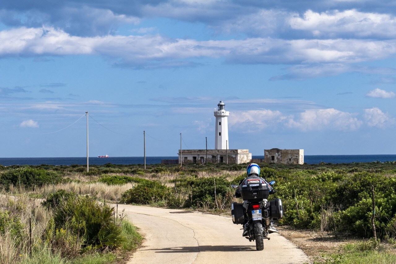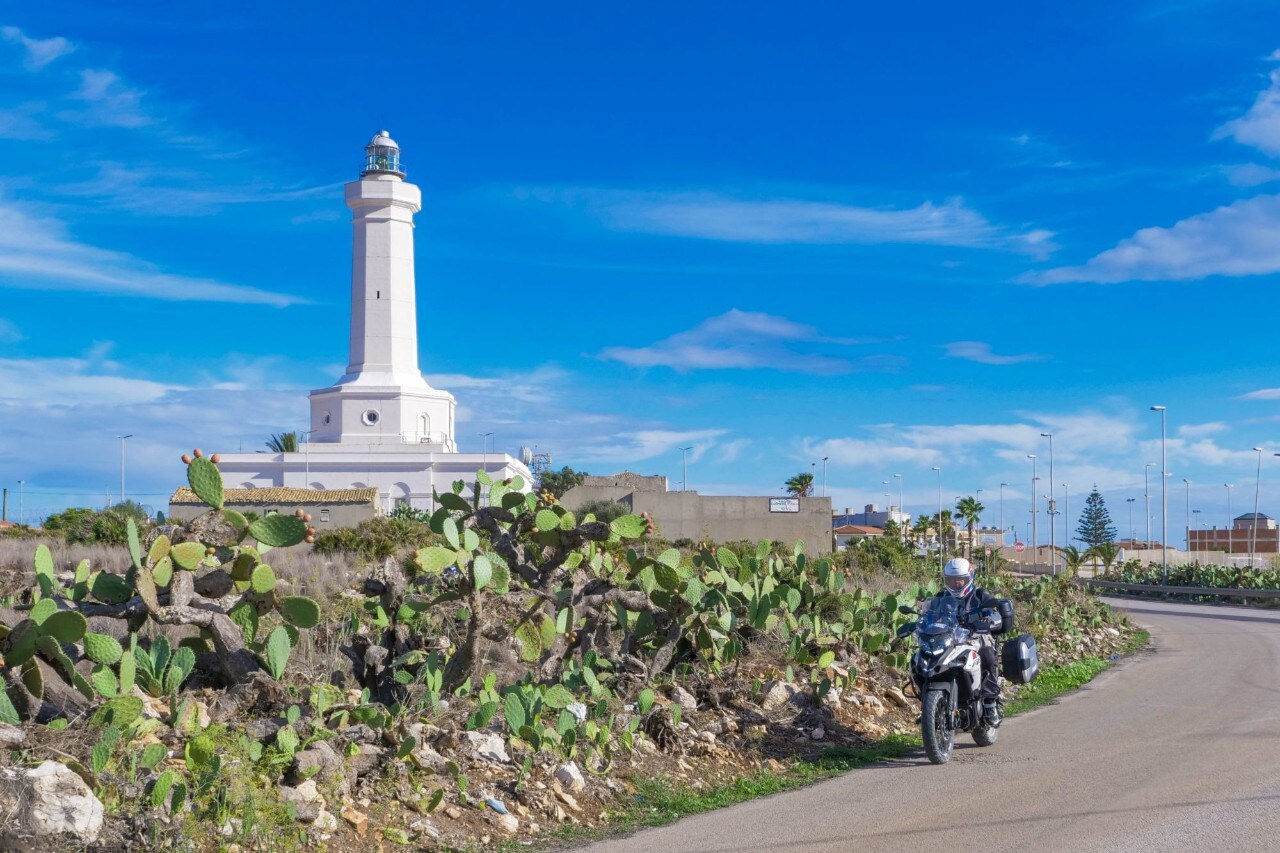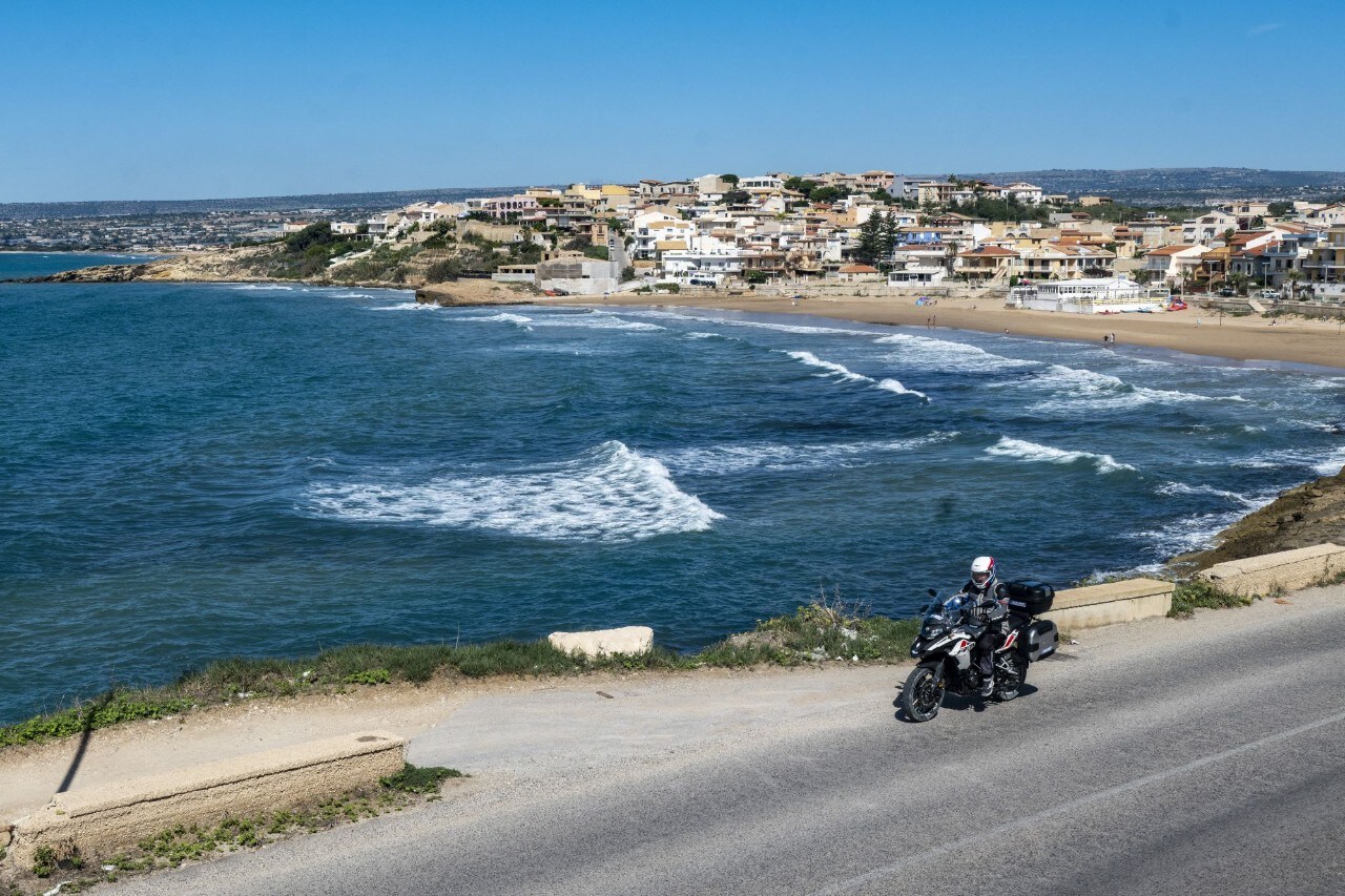 L’incontro tra la possibilità di trovare una moto a noleggio e le tariffe estremamente vantaggiose delle compagnie low cost che fanno scalo oltre che su Palermo, Catania e Trapani sull’aeroporto di Comiso, rende questo viaggio ideale anche per “quella” settimanina di ferie da prendere a giugno o settembre, per esempio. Per il noleggio abbiamo scelto la RASI RENT auto moto & bike di Marina di Ragusa, che offre auto, motoe scooter, ma anche bici a pedalata assistita e city bike. Per il nostro viaggio ci è stata messa a disposizione una fiammante Benelli TRK 502 X dotata di tre borse rigide, con la quale abbiamo percorso più di mille km. Ed è stata una vera e propria sorpresa, ad iniziare dall’abitabilità e dalla posizione di guida veramente comoda anche in due con bagaglio. Una sorpresa positiva confermata anche nella guida più sportiva, dove l’avantreno è bello piantato al suolo quando si piega con decisione. Le ruote a raggi (19”-17”) consentono divagazioni fuori dall’asfalto incassando bene. Il bicilindrico da 500 cc e 47,6 CV a 8.500 giri è adeguato anche a una moto che leggera non è (235 kg in ordine di marcia) e mostra solo alle alte velocità autostradali qualche vibrazione sulle pedane. Da migliorare, invece, il fascio illuminante nella guida notturna.