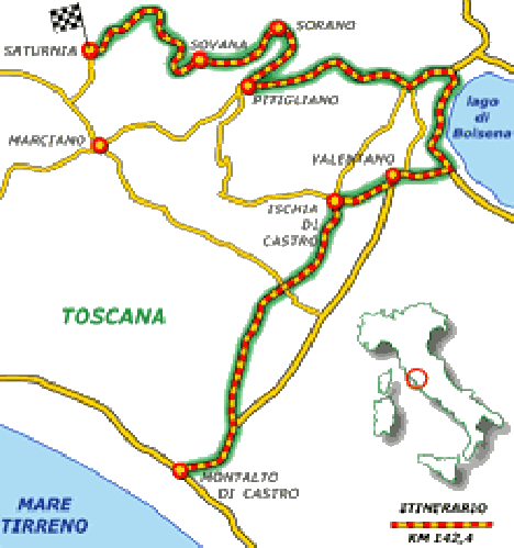 150 chilometri tra Toscana e Lazio per curiosare tra rovine etrusche, borghi arroccati e per godere dei benefici delle pozze termali. In più una ricca gallery fotografica e il road book da scaricare