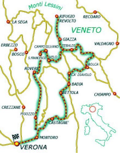 120 chilometri di splendide strade da moto per ritrovare il piacere della guida. Le colline della Valpolicella, montagne, alpeggi e una grande città: Verona. La mappa e la gallery