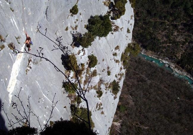 Dopo poche curve arriviamo ad un belvedere che ci fa saltare il cuore in gola, l'altezza è talmente elevata che quasi non riusciamo a guardare di sotto, ma... Incredibile! Ci sono dei ragazzi che si dilettano nell'arrampicata su queste pareti: che coraggio!!!