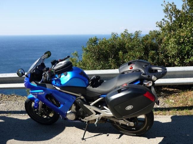 Il bicilindrico in linea della moto sembra essere decisamente a suo agio in questi percorsi che si snodano tra mare e monti.