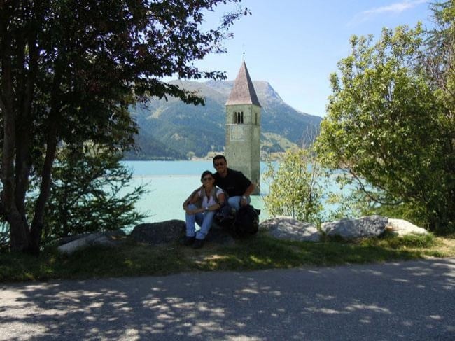 Arrivati sul posto, osserviamo "la cima del vecchio Campanile di Curon (Graun)" che emerge dalle acque ed è tuttora visibile in seguito all'alluvione forzata della valle da parte dell'uomo per ampliare il bacino idrico al fine di sfruttare le acque per la produzione dell'energia idroelettrica.