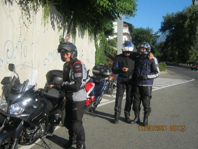 Alle 8 del giorno 11, Alberto e Antonio sono fuori casa mia, mentre Carlo ci aspetta a Feriolo e così, dopo i saluti, in sella a due Honda Varadero 1000, una Yamaha Bulldog 1100 ed una Suzuki V-Strom 650, si parte.