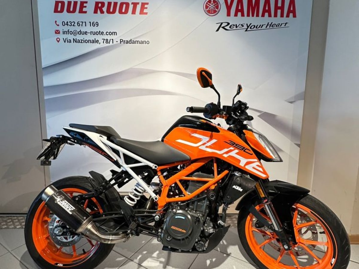 La KTM 390 Duke è una naked leggera e sportiva perfetta per chi cerca agilità e divertimento, equipaggiata con un monocilindrico a iniezione da 373 cc, raffreddato a liquido, che eroga circa 32 kW (43,5 CV) a 9.000 giri/min e una coppia di 37 Nm a 7.000 giri/min, conforme alla normativa Euro 5. Il telaio è un traliccio in acciaio, abbinato a una forcella rovesciata all’anteriore e a un forcellone posteriore di tipo sportivo; l’impianto frenante include un disco anteriore da 320 mm e un disco posteriore da 230 mm con ABS Bosch. Le ruote da 17″ montano pneumatici 110/70 all’anteriore e 150/60 al posteriore. Le dimensioni tecniche prevedono una lunghezza di 2.074 mm, una larghezza di 857 mm, un interasse di 1.340 mm, un’altezza sella di circa 830 mm e un peso a secco di 167 kg, con capacità del serbatoio pari a 13,7 litri. Nelle prove di Dueruote la 390 Duke è elogiata per la sua agilità urbana, la reattività del motore anche ai bassi regimi e la ciclistica precisa che la rende un riferimento nel segmento delle naked leggere.