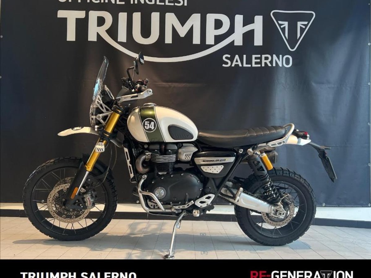 La Triumph Scrambler 1200 è una moto scrambler di alta gamma che abbina estetica retrò e prestazioni moderne, disponibile in versioni come X ed XE, tutte presenti nella sezione usato di Dueruote.it; monta un bicilindrico in linea da 1.200 cc raffreddato a liquido, con potenza di 66,2 kW (90 CV) e coppia di 110 Nm, omologato Euro 4 o Euro 5 a seconda dell’allestimento, abbinate trasmissione a sei marce e distribuzione a un asse a camme in testa. Il telaio è a culla in acciaio con forcella rovesciata e forcellone, mentre la frenata si affida a doppio disco anteriore da 320 mm e disco posteriore da 255 mm, entrambi con ABS; le ruote sono da 21″ all’anteriore e 17″ al posteriore, con pneumatici adatti a un uso on‑off. Le misure variano tra le versioni: lunghezza da 2.273 a 2.330 mm, larghezza fino a 905 mm, interasse intorno a 1.570 mm, altezza sella minima di 840–870 mm e peso a secco tra 183 kg e 210 kg. Nelle prove su strada Dueruote evidenzia come la Scrambler 1200 XE offra un’ergonomia simile a quella delle moto da regolarità, con busto eretto e sella comoda, mentre la versione X risulta agile e intuitiva anche su asfalto; la XE aggiunge sospensioni ad escursione lunga e ammortizzatori Öhlins, ideali per l’off‑road leggero. Sul mercato dell’usato di Dueruote.it si trovano esemplari immatricolati tra il 2019 e il 2023 con prezzi di listino nelle versioni XE e X a partire da circa €16.595, spesso accessoriati con soluzioni da viaggio.