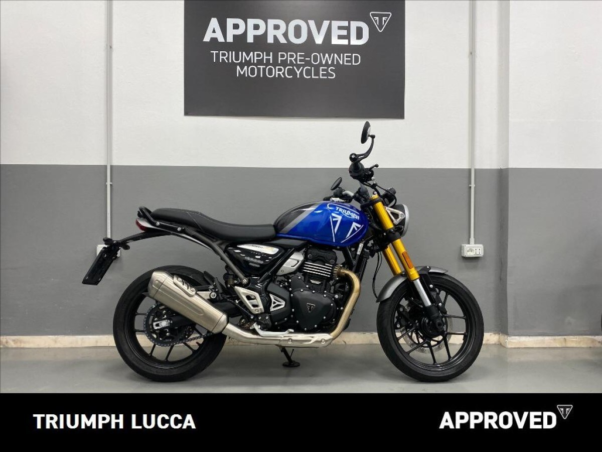 La Triumph Speed 400 usata è una roadster compatta e moderna, che racchiude il DNA sportivo del marchio inglese in una cilindrata accessibile. Equipaggiata con un motore monocilindrico da 398 cc raffreddato a liquido, con potenza di 29,4 kW (40 CV) e cambio a sei marce, offre un’erogazione fluida e brillante. La ciclistica prevede telaio in acciaio, forcella rovesciata da 43 mm, monoammortizzatore regolabile, freni a disco con ABS e cerchi da 17″. Nella sezione annunci usato Triumph su Dueruote, la Speed 400 è apprezzata per la qualità costruttiva, la posizione di guida naturale e lo stile pulito tipico della casa di Hinckley. Sul mercato dell’usato rappresenta una scelta ideale per chi cerca una moto leggera, agile e divertente, perfetta per la città e le gite fuori porta.