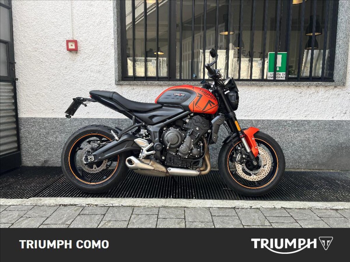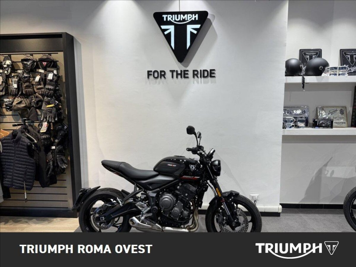 La Triumph Trident 660 è una naked di media cilindrata dotata di un raffinato motore tricilindrico in linea da 660 cc raffreddato a liquido e alimentato a iniezione elettronica, capace di erogare 59,6 kW (81 CV) a 10.250 giri/min e 64 Nm a 6.250 giri/min. Conforme alla normativa Euro 5 con disponibilità anche della versione depotenziata 35 kW per patente A2. Il telaio è un robusto doppio trave in acciaio con forcella rovesciata anteriore e forcellone posteriore. L’impianto frenante prevede doppio disco anteriore da 310 mm e disco posteriore da 255 mm, entrambi con ABS. Le ruote da 17″ montano pneumatici 120/70 ZR17 all’anteriore e 180/55 ZR17 al posteriore, garantendo stabilità e precisione nella guida. Le misure tecniche prevedono lunghezza di 2.020 mm, larghezza di 795 mm, interasse di 1.401 mm, altezza sella minima di 805 mm e un peso a secco di 175 kg. La versione 35 kW Triple Tribute pesa 170 kg. Il serbatoio ha una capacità di 14 litri e la velocità massima è di circa 196 km/h per la versione standard. Nelle prove Dueruote la Trident 660 è stata definita una naked equilibrata e ben riuscita, con sospensioni Showa che offrono un buon bilanciamento tra stabilità e comfort, un impianto frenante Nissin efficace ma progressivo e un motore dal carattere tipico dei tre cilindri Triumph, particolarmente brillante nei medi regimi. Sul mercato dell’usato Dueruote sono presenti numerosi annunci di Trident 660 immatricolate dal 2021 al 2025, con prezzi che partono da circa 6.900 euro fino a 7.900 euro. Conferma così la diffusa adozione tra chi cerca una naked moderna, accessoriata e adatta sia all’uso quotidiano sia al percorso sportivo leggero.
