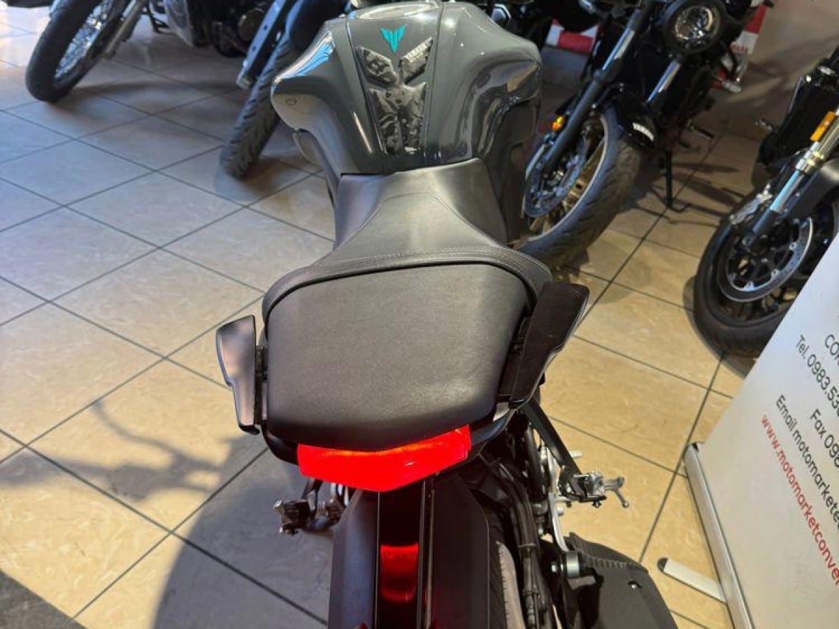 La Yamaha MT‑125 è una naked compatta e sportiva pensata per giovani motociclisti e titolari di patente A1, ideale per l’uso urbano quotidiano e per muovere i primi passi nel mondo delle due ruote. Equipaggiata con un motore monocilindrico da 125 cc, raffreddato a liquido e alimentato a iniezione elettronica, la MT‑125 eroga una potenza di 11 kW (15 CV) a 10.000 giri/min e una coppia massima di 11,5 Nm a 8.000 giri/min, conforme alla normativa Euro 5. Il telaio è un Deltabox in acciaio che assicura una guida precisa e reattiva. All’anteriore troviamo una forcella rovesciata da 41 mm, mentre al posteriore è presente un forcellone con monoammortizzatore. L’impianto frenante è composto da un disco anteriore da 292 mm e da un disco posteriore da 220 mm, entrambi assistiti da ABS di serie. Le ruote da 17 pollici montano pneumatici da 100/80 all’anteriore e 140/70 al posteriore, per una guida stabile e sicura. Le dimensioni della Yamaha MT‑125 comprendono un interasse di 1.325 mm, una larghezza di 785 mm e un’altezza della sella di 810 mm, per un buon compromesso tra posizione sportiva e comfort. Il peso a secco è di 128 kg, mentre il serbatoio ha una capacità di 10 litri. Prodotta dal 2016 nella versione ABS e aggiornata con omologazione Euro 5, la MT‑125 è oggi una delle moto 125 usate più diffuse sul mercato, apprezzata per il suo design aggressivo ispirato alla gamma MT e per le sue caratteristiche tecniche che la rendono adatta sia ai neofiti sia a chi cerca una moto compatta, leggera e affidabile per la città e il tempo libero.