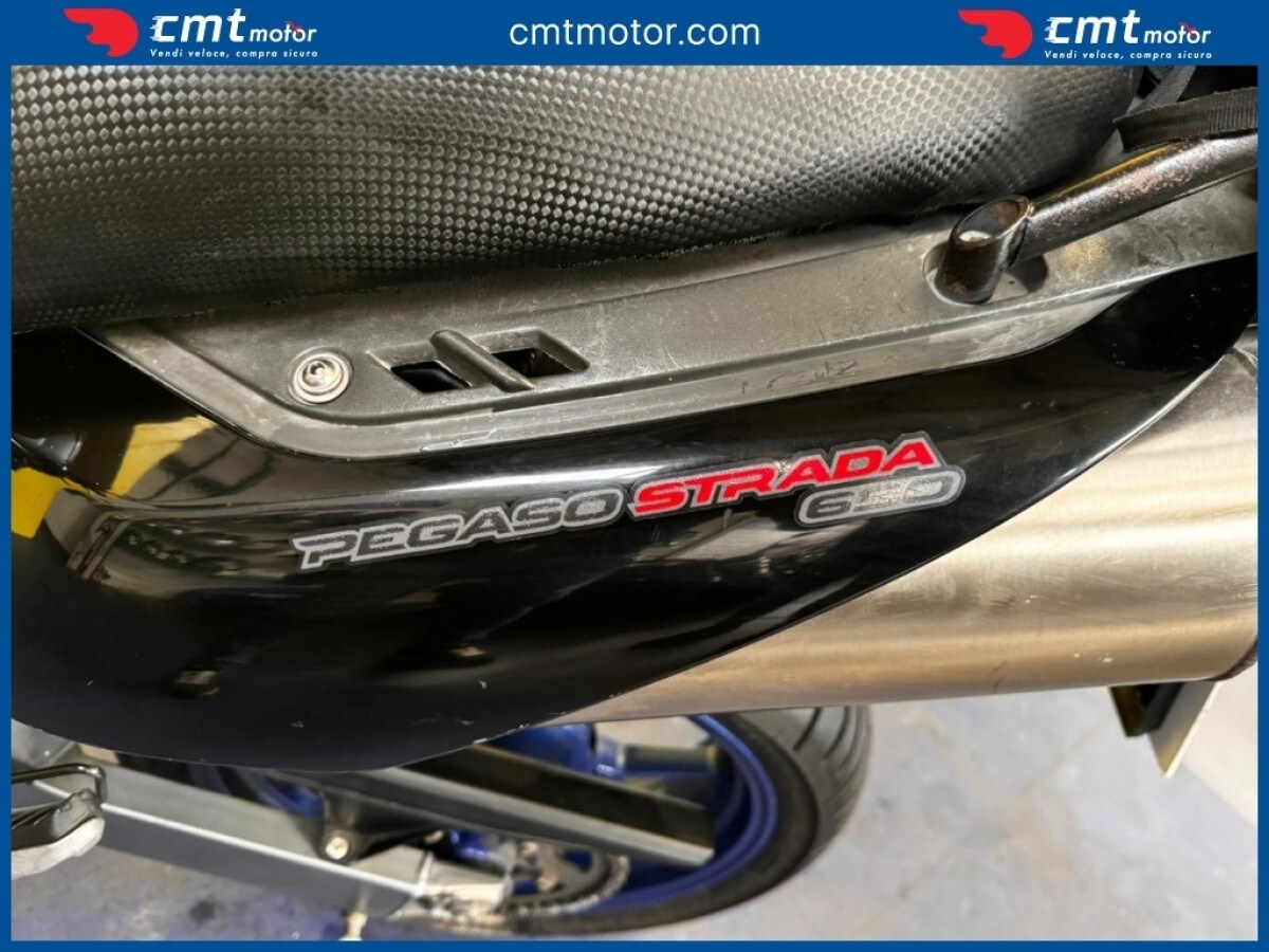 La Aprilia Pegaso 650 è una versatile crossover “on‑off” monocilindrica prodotta tra il 2005 e il 2008 nelle versioni Strada, Trail e Factory – tutte dotate di motore da 660 cc a quattro tempi, raffreddato a liquido, alimentazione a iniezione, distribuzione a un asse a camme in testa, potenza di circa 35 kW (47,6 CV) e coppia di 59 Nm, omologazione Euro 3, cambio a cinque rapporti, serbatoio da 16 litri e velocità massima dichiarata di 165 km/h; la ciclistica è affidata a un telaio in acciaio a monotrave, forcella telescopica, forcellone posteriore, freni a disco da 320 mm all’anteriore e 240 mm al posteriore, con ruote da 17″ e pneumatici 110/70 ZR17 e 160/60 ZR17, mentre le dimensioni tecniche indicano una lunghezza di 2.173 mm, larghezza di 810–860 mm, altezza sella minima di 780 mm e interasse di 1.490 mm; la versione Factory enfatizza l’impostazione motard con dotazioni raffinate e caratteristiche estetiche di pregio. Le opinioni degli utenti Jamed ADR esternano entusiasmo: la Pegaso 650 è snella, ben rifinita e divertente da guidare, tanto da essere definita “un giocattolo serio” con costi di gestione low cost, buon equilibrio ciclistico e motore pronto e senza vibrazioni percepibili.