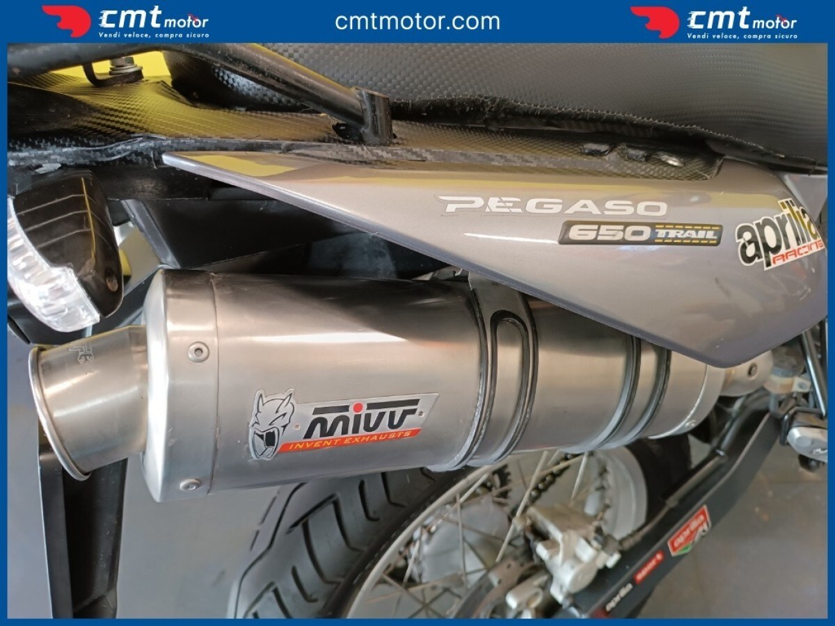 La Aprilia Pegaso 650 è una versatile crossover “on‑off” monocilindrica prodotta tra il 2005 e il 2008 nelle versioni Strada, Trail e Factory – tutte dotate di motore da 660 cc a quattro tempi, raffreddato a liquido, alimentazione a iniezione, distribuzione a un asse a camme in testa, potenza di circa 35 kW (47,6 CV) e coppia di 59 Nm, omologazione Euro 3, cambio a cinque rapporti, serbatoio da 16 litri e velocità massima dichiarata di 165 km/h; la ciclistica è affidata a un telaio in acciaio a monotrave, forcella telescopica, forcellone posteriore, freni a disco da 320 mm all’anteriore e 240 mm al posteriore, con ruote da 17″ e pneumatici 110/70 ZR17 e 160/60 ZR17, mentre le dimensioni tecniche indicano una lunghezza di 2.173 mm, larghezza di 810–860 mm, altezza sella minima di 780 mm e interasse di 1.490 mm; la versione Factory enfatizza l’impostazione motard con dotazioni raffinate e caratteristiche estetiche di pregio. Le opinioni degli utenti Jamed ADR esternano entusiasmo: la Pegaso 650 è snella, ben rifinita e divertente da guidare, tanto da essere definita “un giocattolo serio” con costi di gestione low cost, buon equilibrio ciclistico e motore pronto e senza vibrazioni percepibili.