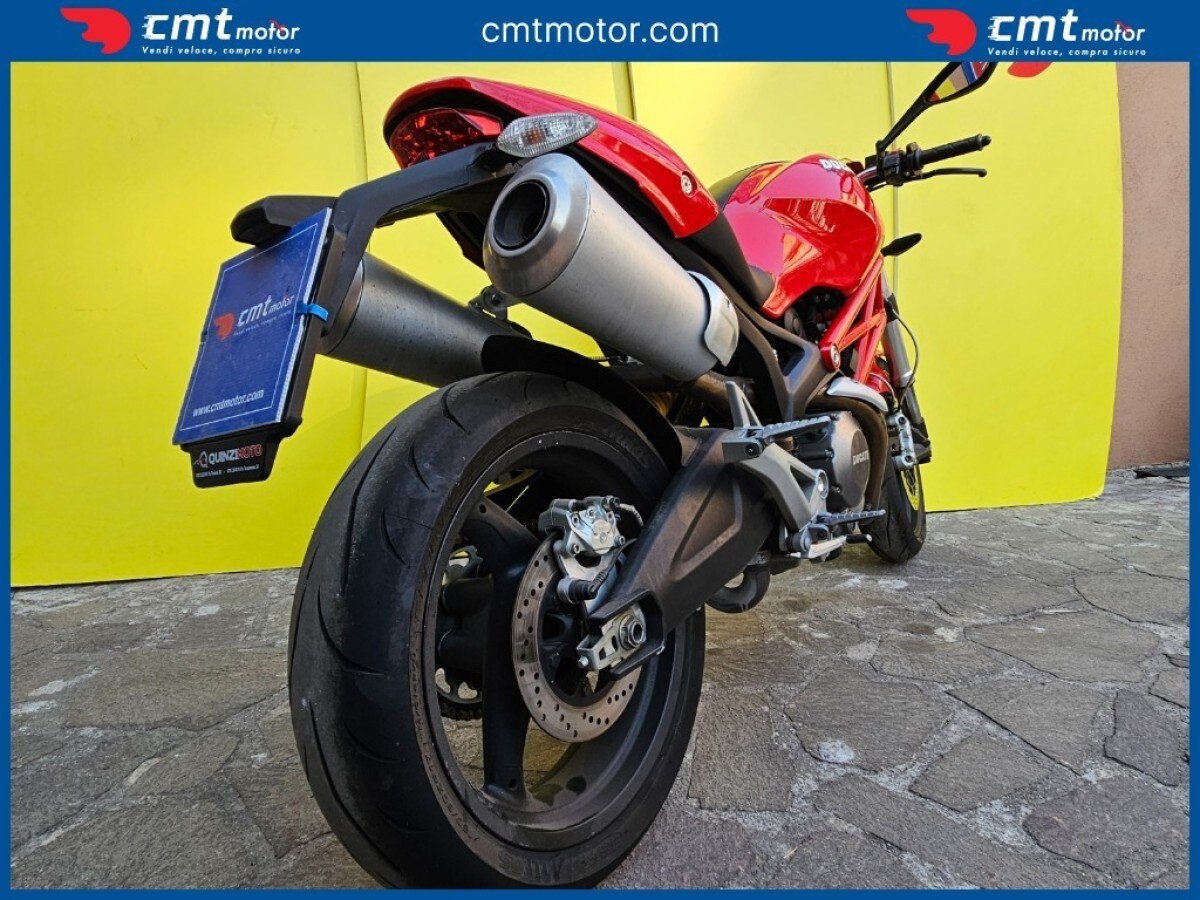 La Ducati Monster 696 rappresenta una delle naked più iconiche della casa di Borgo Panigale, combinando stile essenziale e prestazioni accessibili. Il suo design compatto e il telaio a traliccio in acciaio la rendono immediatamente riconoscibile, mentre la posizione di guida è studiata per offrire comfort e controllo. Il cuore pulsante della Monster 696 è un bicilindrico a L di 90°, raffreddato ad aria, con distribuzione desmodromica e alimentazione a iniezione elettronica. Questo motore eroga una potenza di 54,5 kW (74,1 CV) a 9.000 giri/min e una coppia massima di 69 Nm a 7.750 giri/min, garantendo una risposta pronta e lineare. La trasmissione è affidata a un cambio a 6 marce, con frizione a bagno d'olio. La ciclistica prevede una forcella rovesciata all'anteriore e un forcellone in alluminio al posteriore, assicurando stabilità e precisione nella guida. L'impianto frenante è composto da due dischi anteriori da 320 mm e un disco posteriore da 245 mm, con ABS disponibile su alcune versioni. Le ruote da 17 pollici montano pneumatici da 120/60 all'anteriore e 160/60 al posteriore. Con un peso a secco di 161 kg e una sella posta a 770 mm da terra, la Monster 696 è agile e maneggevole, adatta sia ai neofiti che ai motociclisti più esperti. Il serbatoio ha una capacità di 15 litri, offrendo un'autonomia adeguata per l'uso quotidiano e le gite fuori porta. In sintesi, la Ducati Monster 696 è una moto equilibrata, che unisce estetica, prestazioni e facilità di guida, incarnando lo spirito delle naked italiane.