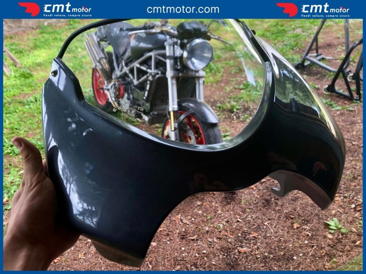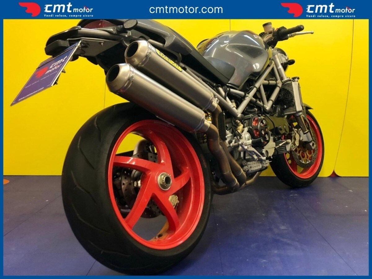 La Ducati Monster S4R, prodotta tra il 2007 e il 2009 e ormai fuori produzione, è una naked sportiva d'eccezione dotata di un potente motore bicilindrico a V longitudinale da 998 cc raffreddato a liquido, con distribuzione a due assi a camme in testa e alimentazione a iniezione, capace di erogare 89 kW (121 CV) a 9.500 giri/min e una coppia di 104 Nm a 7.500 giri/min, conforme alla normativa Euro 3. Equipaggiata con cambio a sei marce e trasmissione finale a catena con serbatoio da 14 litri, offre una velocità massima dichiarata di 245 km/h; la ciclistica comprende un telaio a traliccio in acciaio, forcella rovesciata all’anteriore, forcellone monobraccio e un impianto frenante con doppio disco da 320 mm all’anteriore e disco posteriore da 245 mm, su ruote da 17″ con pneumatici 120/70 e 180/55. Le sue dimensioni tecniche indicano una lunghezza di 2.120 mm, larghezza di 800 mm, altezza della sella a soli 800 mm da terra, un interasse di 1.440 mm e un peso a secco di 177 kg. Nella prova lettori su Dueruote, la S4R si è guadagnata giudizi entusiasti soprattutto per il motore Testastretta grintoso e presente fin dai bassi regimi, il carattere sportivo e la maneggevolezza sorprendente per una naked così potente, confermandosi una delle Monster più potenti e affascinanti nel mercato dell’usato.
