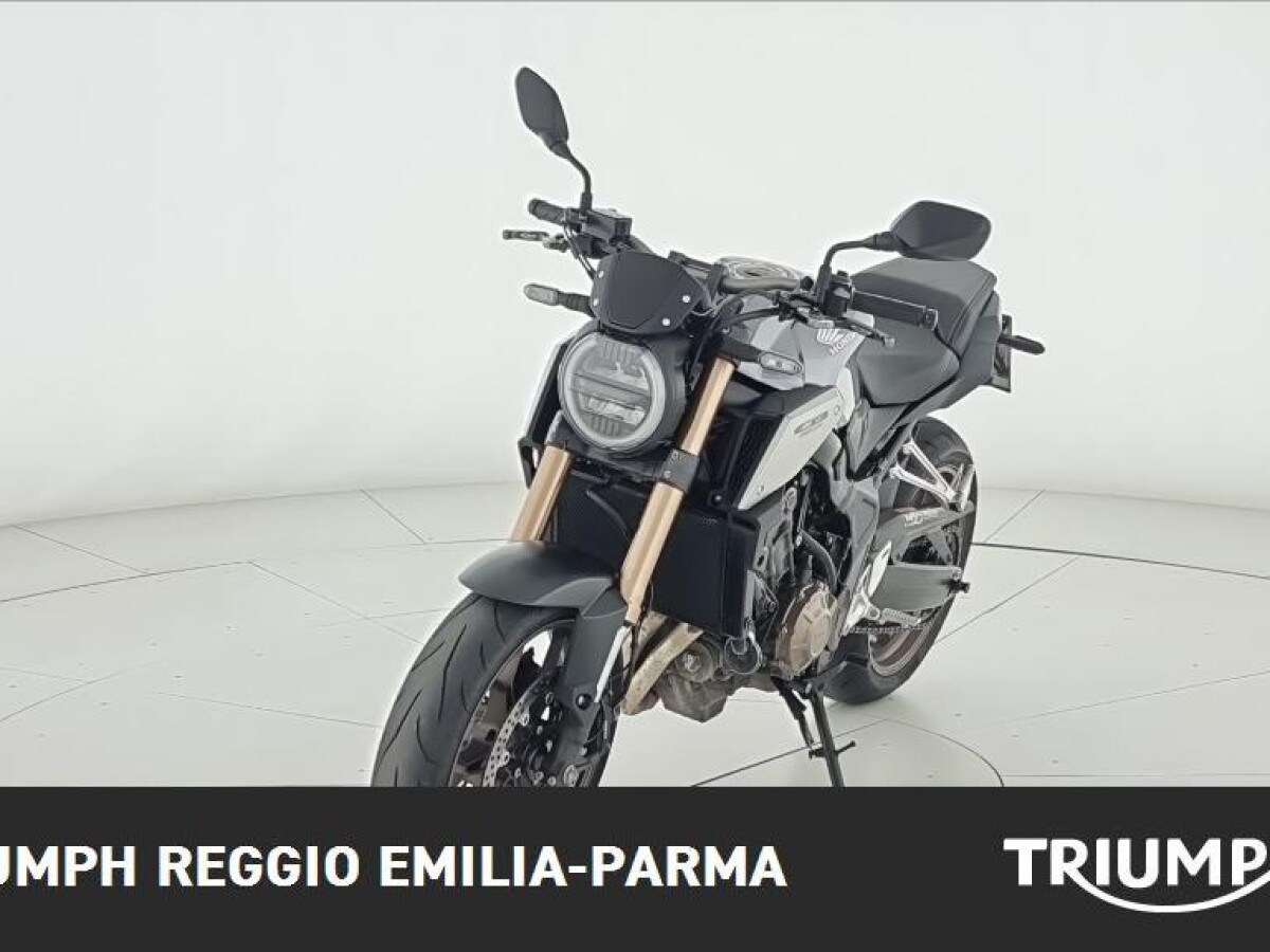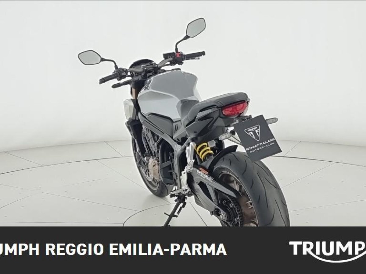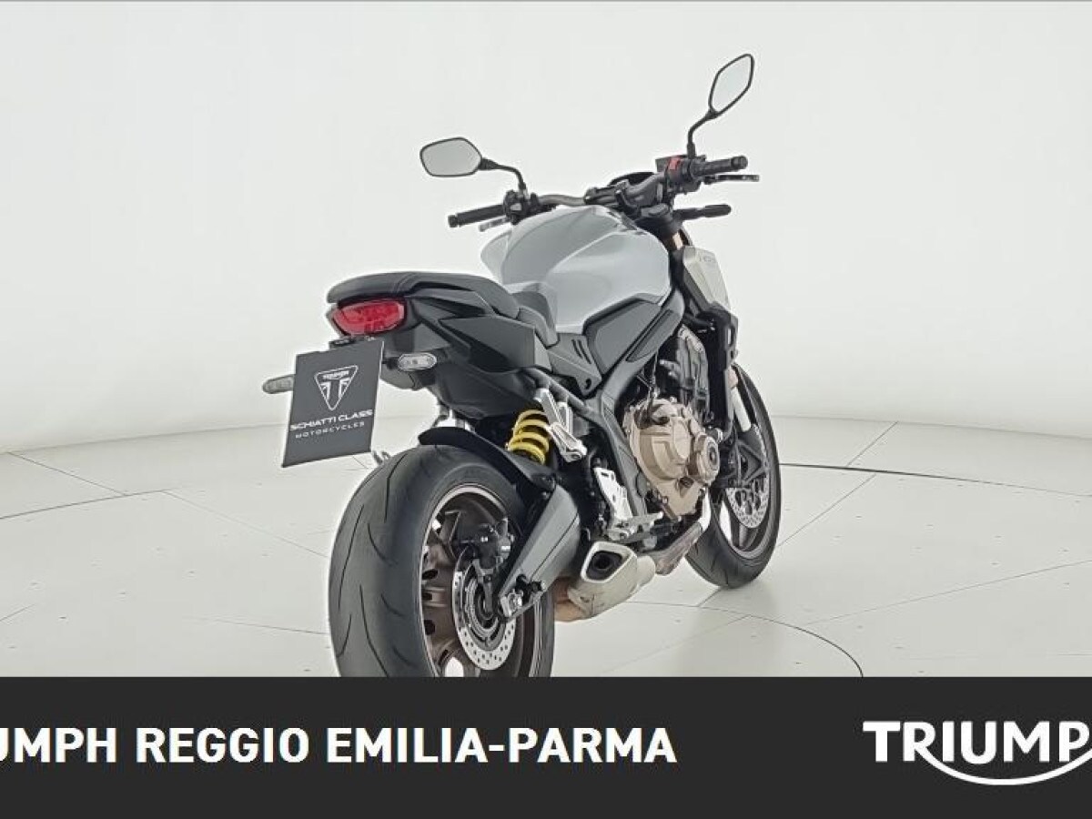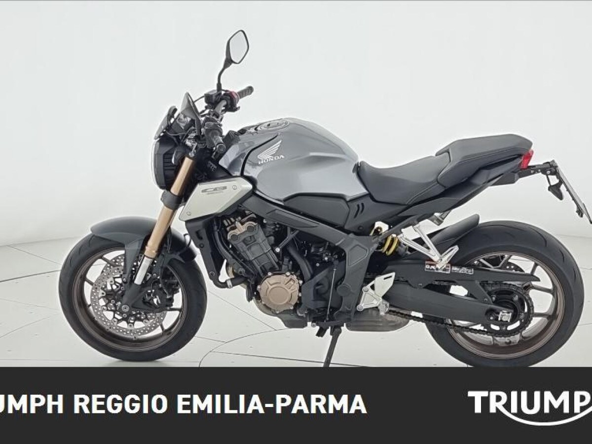 La Honda CB 650, prodotta tra il 2019 e il 2020 e oggi fuori produzione, è una naked media dal fascino moderno caratterizzata da un motore a 4 cilindri in linea da 649 cc raffreddato a liquido, con iniezione elettronica, eroga 70 kW (95,2 CV) a 12.000 giri/min e 64 Nm di coppia a 8.500 giri/min, conforme alla normativa Euro 4; la ciclistica è solida e compatta grazie al telaio monotrave in acciaio e all’interasse contenuto in 1.450 mm, la forcella anteriore è rovesciata e il posteriore affidato a un classico forcellone, mentre l’impianto frenante comprende doppio disco da 310 mm all’anteriore e singolo disco da 240 mm al posteriore, entrambi con ABS; monta ruote da 17″ con pneumatici 120/70 e 180/55, ha dimensioni equilibrate (lunghezza 2.130 mm, larghezza 780 mm, altezza sella minima 810 mm), un peso a secco di 184 kg, un serbatoio da 15 litri e una velocità massima dichiarata di 197 km/h. Nelle prove redazionali emerge per la sua compattezza, la facilità nelle manovre anche a bassa velocità, la stabilità del telaio e la qualità della costruzione, con finiture resistenti e materiali curati che evocano l’affidabilità tipica del marchio Honda.