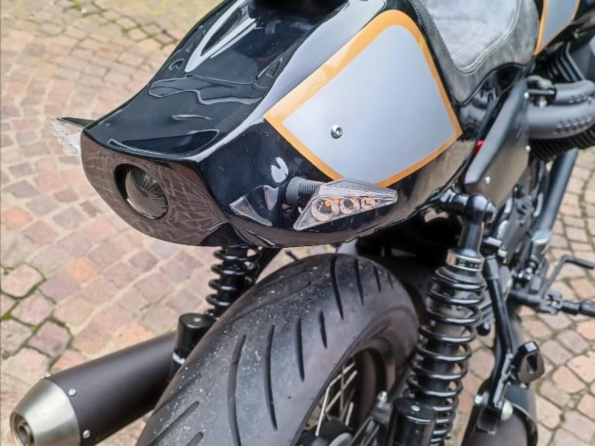 La Moto Guzzi V7 III è una moto naked classica prodotta dal 2017 al 2022 e rappresenta la terza generazione della serie V7, erede diretta dello stile intramontabile di Mandello del Lario. È spinta da un bicilindrico a V trasversale da 744 cc, raffreddato ad aria, capace di sviluppare 38 kW (51,7 CV) a 6.200 giri/min e 60 Nm di coppia a 4.900 giri/min, con omologazione Euro 4. Il motore è alimentato a iniezione elettronica e abbinato a un cambio a sei rapporti con trasmissione finale a cardano. Il telaio è a doppia culla in acciaio, la forcella è telescopica e il retrotreno adotta due ammortizzatori regolabili nel precarico. L’impianto frenante è composto da un disco anteriore da 320 mm e uno posteriore da 260 mm con ABS di serie. Le ruote da 18” e 17” montano pneumatici 100/90 all’anteriore e 130/80 al posteriore. Le dimensioni comprendono una lunghezza di 2.185 mm, larghezza di 800 mm, interasse di 1.445 mm e un’altezza della sella di 770 mm, mentre il peso a secco è pari a 189 kg e il serbatoio ha una capacità di 21 litri. La V7 III è stata proposta in diverse versioni, tra cui Stone, Special, Racer e la più recente Stone S con faro full LED, dettagli satinati e finiture premium. Nelle prove su strada di Dueruote si è distinta per la facilità di guida, la risposta dolce del motore e la posizione in sella comoda e naturale. Sul mercato dell’usato rimane una delle Moto Guzzi più richieste grazie alla sua estetica senza tempo, all’affidabilità meccanica e alla forte identità del marchio.