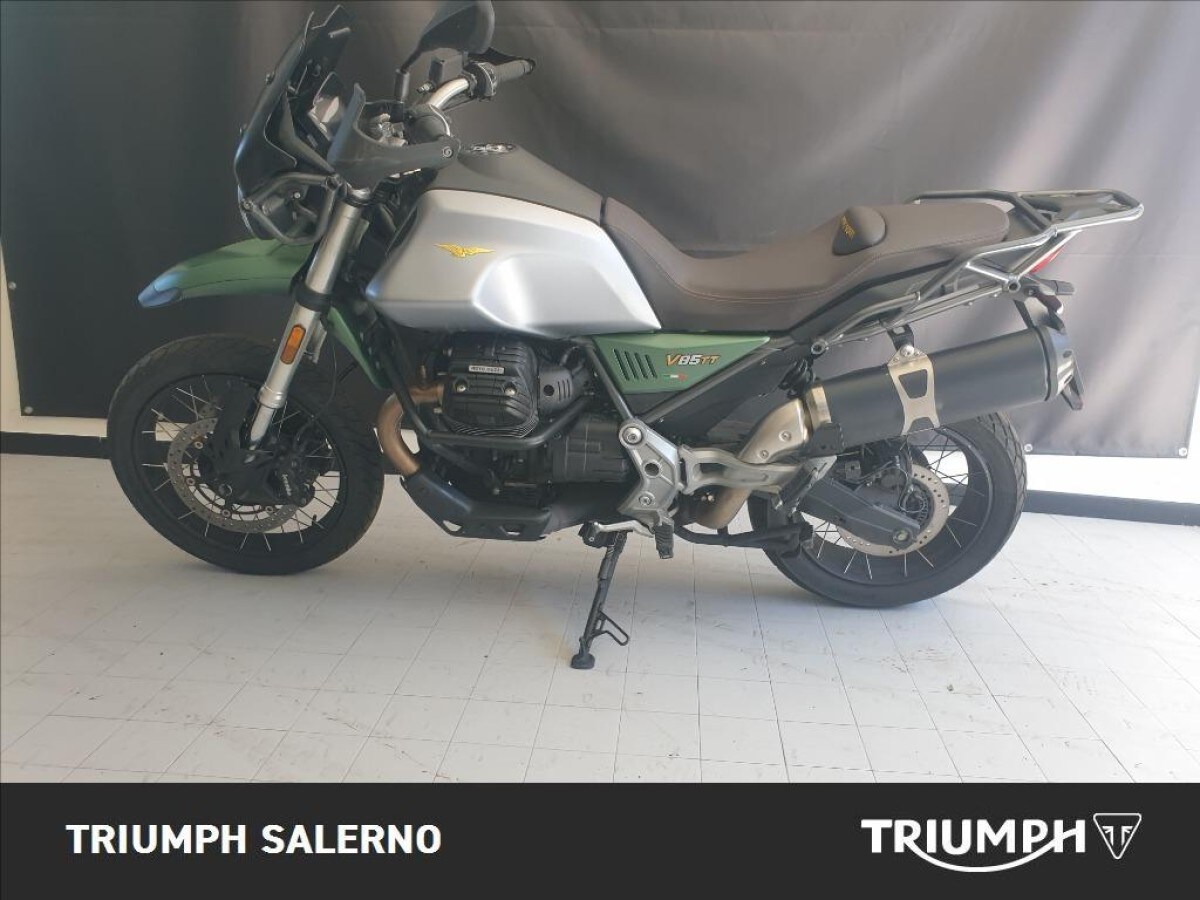 ​La Moto Guzzi V85 TT è una motocicletta che unisce il fascino del design classico alla versatilità di una moderna enduro stradale, offrendo prestazioni equilibrate per chi cerca avventura e comfort su ogni tipo di percorso. Versioni Disponibili V85 TT Standard: Modello base che offre tutte le caratteristiche principali per l'avventura.​ V85 TT Travel: Versione equipaggiata con accessori per il turismo, come borse laterali, parabrezza maggiorato e manopole riscaldate. ​ V85 TT Guardia d'Onore: Edizione speciale ispirata alle moto utilizzate dal Reggimento Corazzieri, caratterizzata da una livrea esclusiva. ​ Prestazioni e Comportamento su Strada La V85 TT si distingue per la sua versatilità, offrendo comfort nei lunghi viaggi e agilità nei percorsi misti. Le sospensioni assorbono efficacemente le asperità del terreno, mentre la posizione di guida eretta garantisce una buona visibilità e controllo. Durante i trasferimenti autostradali, la moto offre un buon riparo aerodinamico e vibrazioni contenute, rendendo piacevoli anche i viaggi più lunghi. ​ La Moto Guzzi V85 TT rappresenta una scelta ideale per chi cerca una moto versatile, capace di affrontare sia lunghi viaggi su strada che percorsi off-road leggeri, senza rinunciare al fascino del design italiano e alla tradizione del marchio Moto Guzzi.​