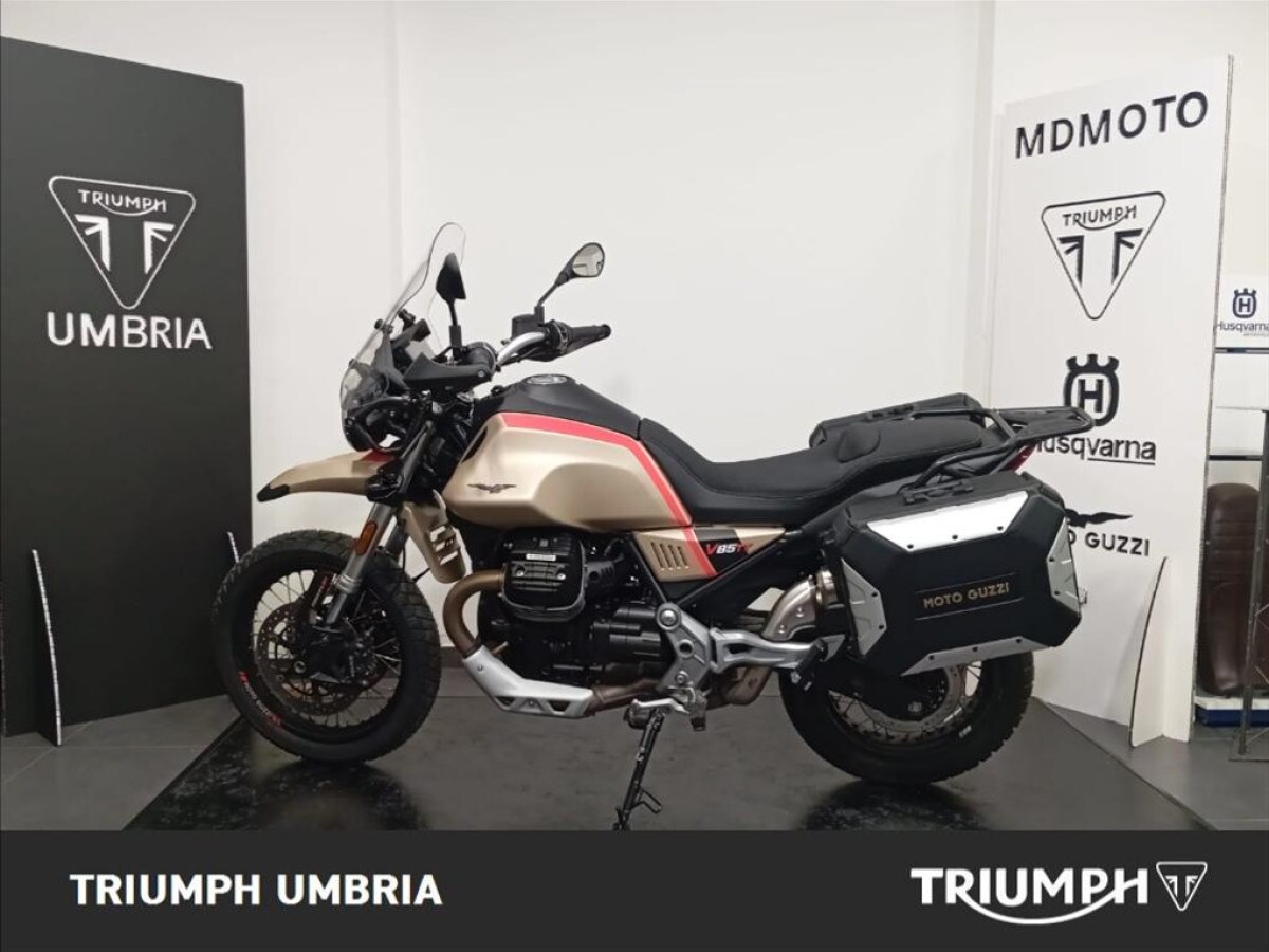 ​La Moto Guzzi V85 TT è una motocicletta che unisce il fascino del design classico alla versatilità di una moderna enduro stradale, offrendo prestazioni equilibrate per chi cerca avventura e comfort su ogni tipo di percorso. Versioni Disponibili V85 TT Standard: Modello base che offre tutte le caratteristiche principali per l'avventura.​ V85 TT Travel: Versione equipaggiata con accessori per il turismo, come borse laterali, parabrezza maggiorato e manopole riscaldate. ​ V85 TT Guardia d'Onore: Edizione speciale ispirata alle moto utilizzate dal Reggimento Corazzieri, caratterizzata da una livrea esclusiva. ​ Prestazioni e Comportamento su Strada La V85 TT si distingue per la sua versatilità, offrendo comfort nei lunghi viaggi e agilità nei percorsi misti. Le sospensioni assorbono efficacemente le asperità del terreno, mentre la posizione di guida eretta garantisce una buona visibilità e controllo. Durante i trasferimenti autostradali, la moto offre un buon riparo aerodinamico e vibrazioni contenute, rendendo piacevoli anche i viaggi più lunghi. ​ La Moto Guzzi V85 TT rappresenta una scelta ideale per chi cerca una moto versatile, capace di affrontare sia lunghi viaggi su strada che percorsi off-road leggeri, senza rinunciare al fascino del design italiano e alla tradizione del marchio Moto Guzzi.​