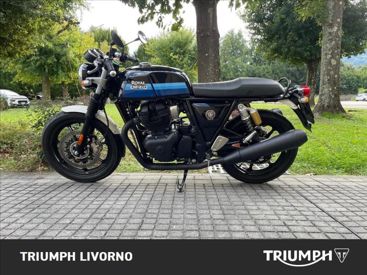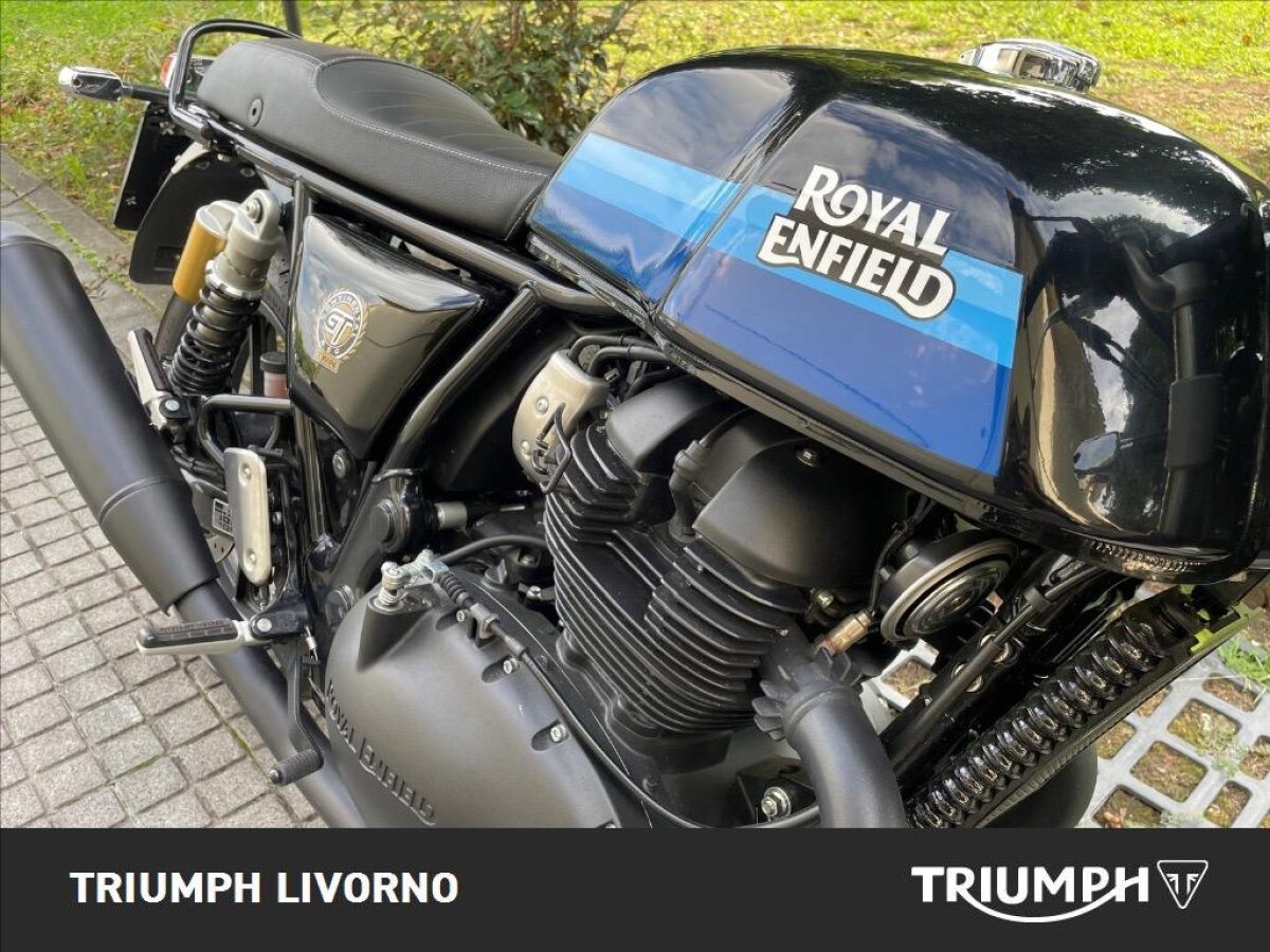La Royal Enfield Continental GT è una moto che unisce lo stile delle moto da corsa degli anni '60 a caratteristiche moderne. La versione originale della Continental GT risale al 1965, quando fu lanciata come la moto più sportiva di Royal Enfield, con un motore monocilindrico da 250 cc. Nel 2013, la Continental GT è stata rilanciata con un motore monocilindrico da 535 cc, per poi evolversi ulteriormente nella versione attuale, introdotta nel 2018. L'attuale Royal Enfield Continental GT è spinta da un bicilindrico parallelo da 648 cc raffreddato ad aria/olio, da 47 CV e 52 Nm. Il telaio è in acciaio abbinato a forcella telescopica da 41 mm e doppi ammortizzatori regolabili al posteriore. L’impianto frenante della Royal Enfield Continental GT prevede un disco singolo anteriore da 320 mm con pinza a due pistoncini un disco posteriore da 240 mm. Le ruote sono a raggi da 18 pollici con pneumatici 100/90 e 130/70. La strumentazione è composta da due indicatori analogici con un display digitale per le informazioni aggiuntive. Il peso è di 186 kg a secco e il serbatoio tiene 12,5 litri.
