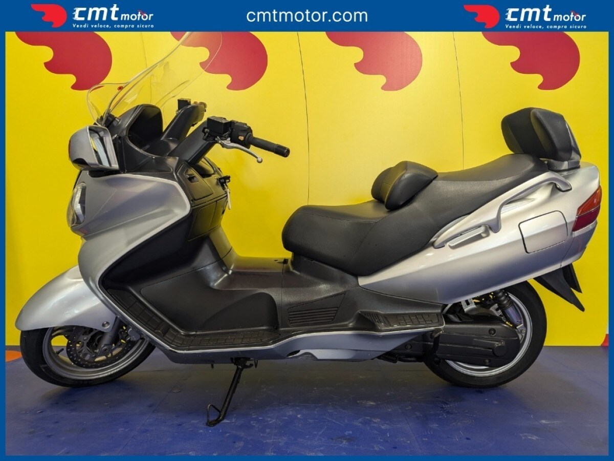 Il Suzuki Burgman 650 è un maxi-scooter pensato per chi cerca comfort e praticità negli spostamenti quotidiani e nei viaggi a medio raggio. Introdotto nei primi anni 2000, si è affermato come uno dei modelli di punta nel segmento grazie alle sue caratteristiche tecniche e alla qualità costruttiva. Il motore bicilindrico in linea da 638 cc eroga una potenza di 40,5 kW (55,1 CV) a 7.000 giri/min e una coppia massima di 62 Nm a 5.000 giri/min. Questo propulsore è raffreddato a liquido e alimentato a iniezione elettronica, abbinato a una trasmissione automatica con variatore che consente una guida fluida e senza strappi. Il cambio offre anche la modalità manuale, che consente al pilota di selezionare le marce tramite comandi al manubrio. La ciclistica si basa su un telaio monotrave in acciaio, con una sospensione anteriore a forcella telescopica e una posteriore a motore oscillante. L'impianto frenante prevede un doppio disco anteriore da 260 mm e un disco posteriore da 250 mm, con ABS disponibile su molte versioni. Il Burgman 650 offre una sella ampia e ben imbottita, posizionata a 750 mm da terra, che garantisce una posizione di guida comoda. Il parabrezza e la carenatura assicurano una buona protezione aerodinamica, mentre il vano sottosella può ospitare due caschi integrali. Il retroscudo è dotato di ulteriori vani portaoggetti, aumentando la praticità. Sul mercato dell'usato sono disponibili diverse versioni del Burgman 650, con chilometraggi variabili e dotazioni differenti. È consigliabile verificare sempre lo stato della trasmissione e della cinghia di trasmissione durante l'acquisto, in quanto sono componenti soggetti a usura. La manutenzione regolare è essenziale per mantenere prestazioni ottimali