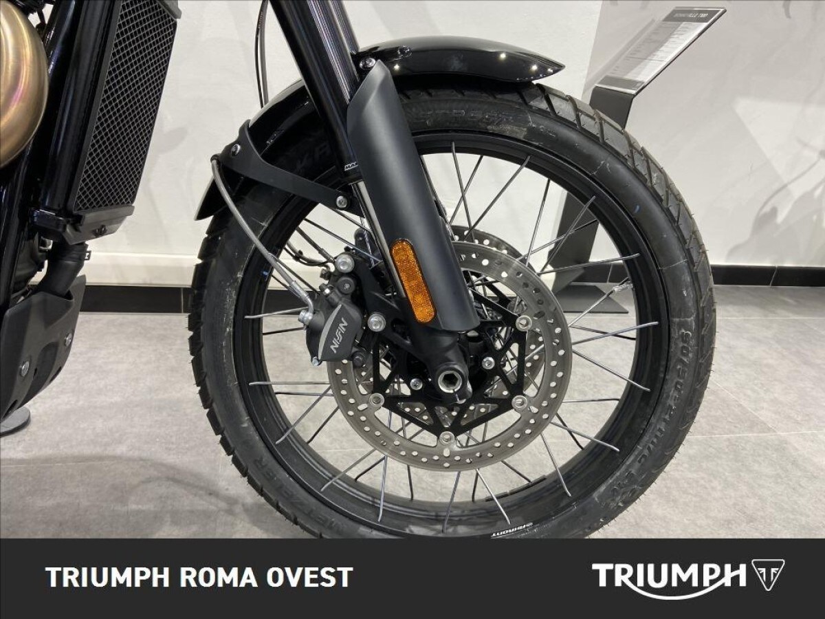 La Triumph Scrambler 1200 è una moto scrambler di alta gamma che abbina estetica retrò e prestazioni moderne, disponibile in versioni come X ed XE, tutte presenti nella sezione usato di Dueruote.it; monta un bicilindrico in linea da 1.200 cc raffreddato a liquido, con potenza di 66,2 kW (90 CV) e coppia di 110 Nm, omologato Euro 4 o Euro 5 a seconda dell’allestimento, abbinate trasmissione a sei marce e distribuzione a un asse a camme in testa. Il telaio è a culla in acciaio con forcella rovesciata e forcellone, mentre la frenata si affida a doppio disco anteriore da 320 mm e disco posteriore da 255 mm, entrambi con ABS; le ruote sono da 21″ all’anteriore e 17″ al posteriore, con pneumatici adatti a un uso on‑off. Le misure variano tra le versioni: lunghezza da 2.273 a 2.330 mm, larghezza fino a 905 mm, interasse intorno a 1.570 mm, altezza sella minima di 840–870 mm e peso a secco tra 183 kg e 210 kg. Nelle prove su strada Dueruote evidenzia come la Scrambler 1200 XE offra un’ergonomia simile a quella delle moto da regolarità, con busto eretto e sella comoda, mentre la versione X risulta agile e intuitiva anche su asfalto; la XE aggiunge sospensioni ad escursione lunga e ammortizzatori Öhlins, ideali per l’off‑road leggero. Sul mercato dell’usato di Dueruote.it si trovano esemplari immatricolati tra il 2019 e il 2023 con prezzi di listino nelle versioni XE e X a partire da circa €16.595, spesso accessoriati con soluzioni da viaggio.