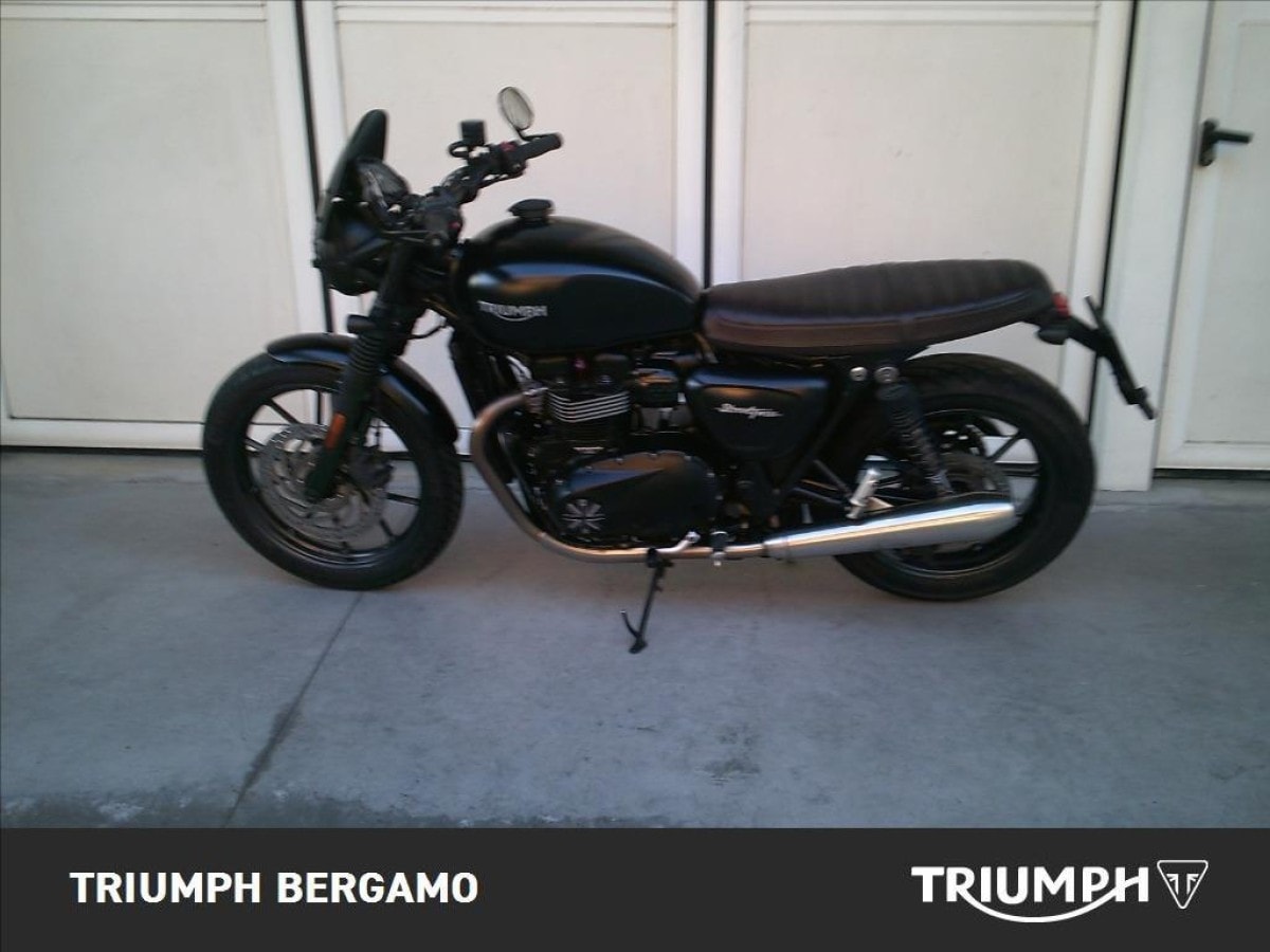 Triumph Street Twin 900 colore nero opaco - unico proprietario con accessori : Plexi fumè - Griglia faro anteriore - Frecce a led - Manopole marroni a botticella - Specchi fine manubrio - Leve regolabili nere - Coperchi iniezione neri - Tappo benzina Monza - Parafango posteriore corto - Loghi coperchi motore - Serbatoio olio freno in metallo - Sella a coste marrone - Catena corona pignone sostituiti - Gomme ottime - Manutenzioni regolari.