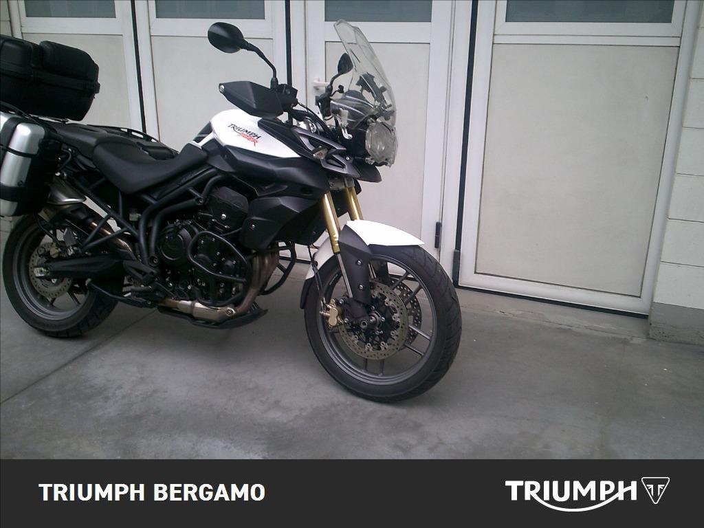 Triumph Tiger 800 ABS immatricolato 06/2011 con accessori : Cavalletto centrale - Barre paramotore basse - Manopole riscaldate ( Oxford ) - 3 valigie Trekker Givi - Plexi alto regolabile - Protezione faro anteriore.