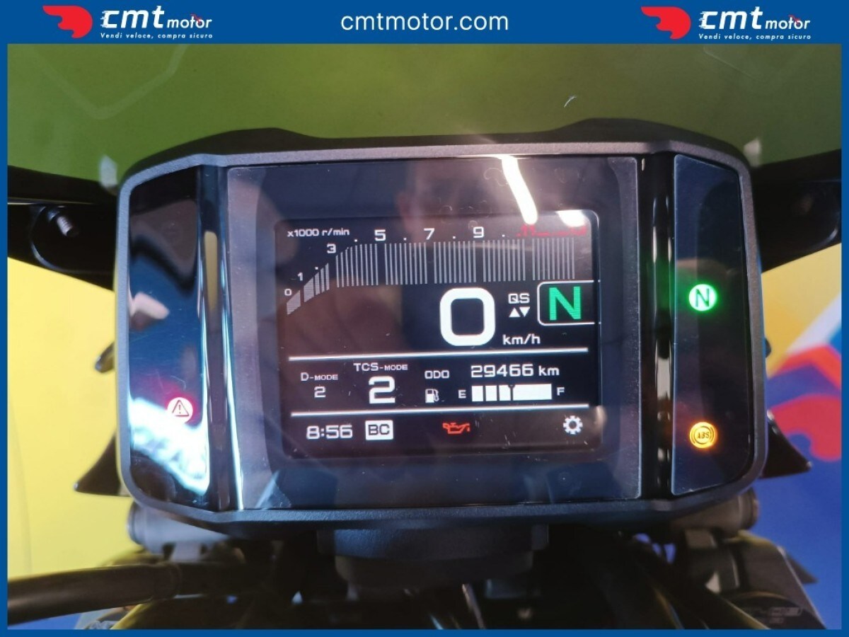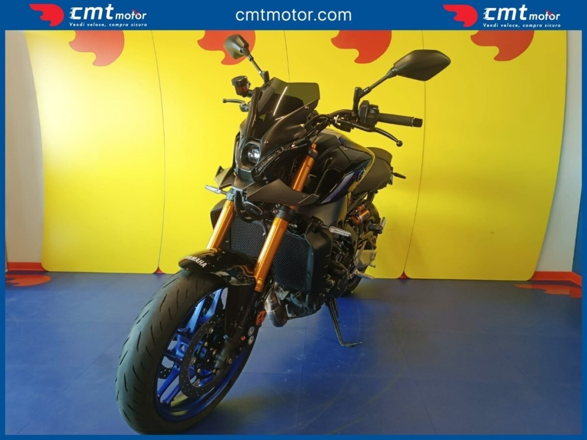 La Yamaha MT-09 è una moto naked introdotta nel 2013. Nella versione attuale alimentata da un motore a tre cilindri in linea da 889 cc CP3 raffreddato a liquido, la Yamaha MT-09 eroga 119 cv a 10.000 giri e 93 Nm a 7.000 giri. Il motore è accoppiato a un cambio a sei marce con frizione antisaltellamento. Il telaio della Yamaha MT-09 è in alluminio pressofuso, abbinato a una forcella rovesciata completamente regolabile da 41 mm all'anteriore e di un monoammortizzatore posteriore regolabile. L’impianto frenante prevede doppi dischi anteriori da 298 mm con pinze radiali a quattro pistoncini e un disco posteriore da 245 mm. Il cruscotto è un display TFT a colori da 3,5 pollici con connettività Bluetooth. La Yamaha MT-09 pesa 174 kg a secco e ha un serbatoio da 14 litri. La Yamaha MT-09 ha rapidamente guadagnato popolarità per il suo buon mix tra prestazioni e prezzo competitivo. Con gli aggiornamenti costanti, tra cui un motore cresciuto nella cilindrata nel 2021, la Yamaha MT-09 continua a essere un punto di riferimento nella categoria delle moto naked.