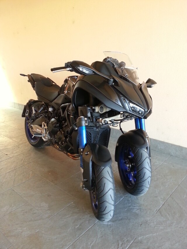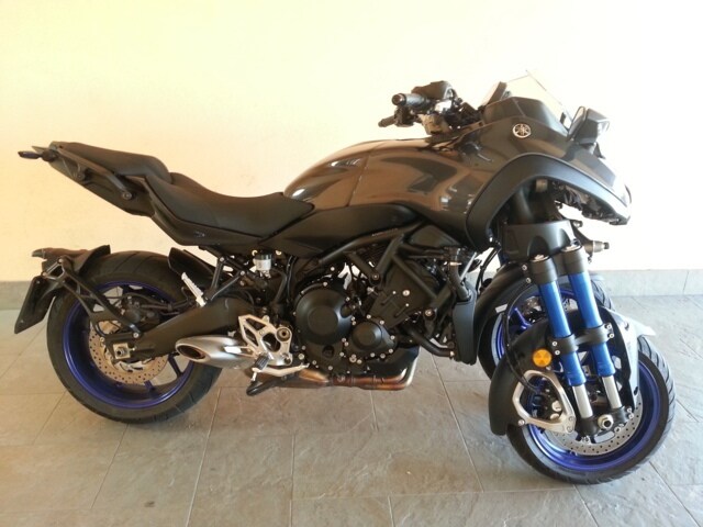 La Yamaha Niken è una moto a tre ruote con struttura lean‑multi‑wheel (LMW), prodotta dal 2018 al 2022, spinta da un tricilindrico in linea raffreddato a liquido da 847 cc che eroga 84,6 kW (115 CV) a 10.000 giri/min e 87,5 Nm di coppia a 8.500 giri/min, omologazione Euro 4 e velocità massima dichiarata di 190 km/h. Il telaio è un doppio trave in acciaio, con doppia forcella rovesciata anteriore e forcellone posteriore; l’impianto frenante comprende doppio disco anteriore da 298 mm e disco posteriore da 282 mm con ABS. Le misure indicano lunghezza 2.150 mm, larghezza 885 mm, altezza sella minima 820 mm, interasse 1.510 mm e peso a secco 240 kg; il serbatoio ha capacità di 18 litri. Nella prova Dueruote la Niken è stata definita una “moto” e non un non convenzionale tre‑ruote, con comportamento dinamico simile a quello di una sportiva, stabilità in curva elevata, frenata sorprendente grazie all’avantreno anteriore doppio e agilità nelle manovre da fermo tipica delle moto a due ruote. Il rinnovato modello GT del 2023 conferma la vocazione touring, offrendo grande fiducia, aderenza e sicurezza nelle pieghe anche su strade tortuose, risultando un’opzione che unisce unicità e guida sicura.