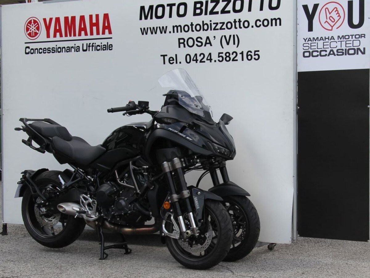 La Yamaha Niken è una moto a tre ruote con struttura lean‑multi‑wheel (LMW), prodotta dal 2018 al 2022, spinta da un tricilindrico in linea raffreddato a liquido da 847 cc che eroga 84,6 kW (115 CV) a 10.000 giri/min e 87,5 Nm di coppia a 8.500 giri/min, omologazione Euro 4 e velocità massima dichiarata di 190 km/h. Il telaio è un doppio trave in acciaio, con doppia forcella rovesciata anteriore e forcellone posteriore; l’impianto frenante comprende doppio disco anteriore da 298 mm e disco posteriore da 282 mm con ABS. Le misure indicano lunghezza 2.150 mm, larghezza 885 mm, altezza sella minima 820 mm, interasse 1.510 mm e peso a secco 240 kg; il serbatoio ha capacità di 18 litri. Nella prova Dueruote la Niken è stata definita una “moto” e non un non convenzionale tre‑ruote, con comportamento dinamico simile a quello di una sportiva, stabilità in curva elevata, frenata sorprendente grazie all’avantreno anteriore doppio e agilità nelle manovre da fermo tipica delle moto a due ruote. Il rinnovato modello GT del 2023 conferma la vocazione touring, offrendo grande fiducia, aderenza e sicurezza nelle pieghe anche su strade tortuose, risultando un’opzione che unisce unicità e guida sicura.