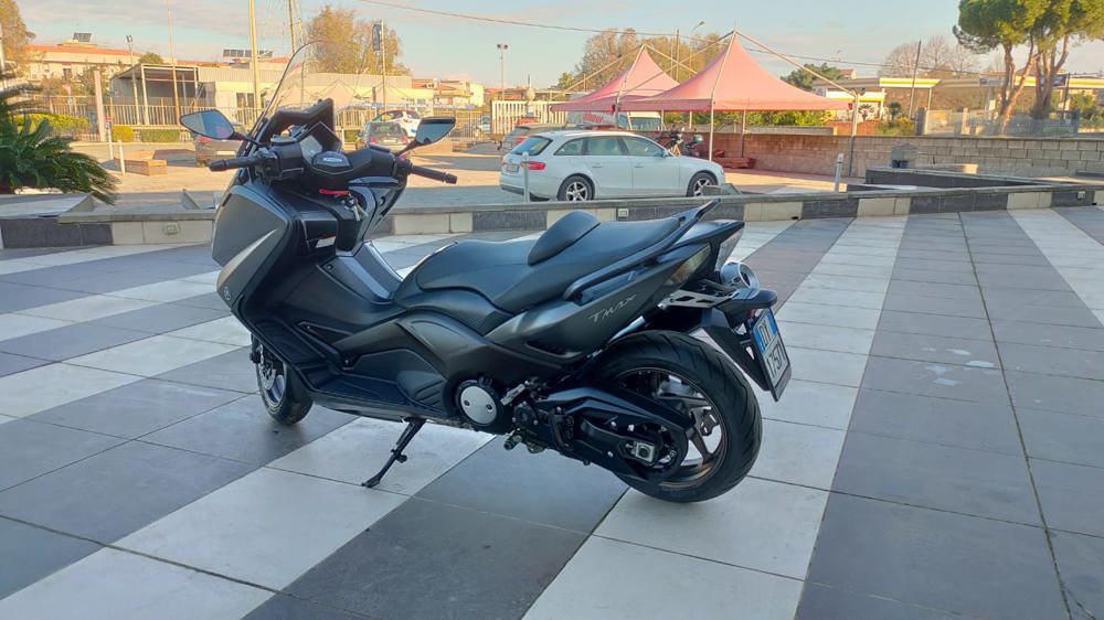 Il modello che ha reso celebri gli scooter sportivi, con il suo famoso bicilindrico, dalla prima serie nel 2001. Il primo Yamaha TMAX univa l'idea della moto alla linea e posizione in sella di uno scooter, il telaio infatti è molto strutturato anche nella zona centrale dello scooter e non ha mai lasciato spazio al trasporto oggetti se non nel sottosella a causa degli ingombri del tunnel centrale. 499 cc e 40 cv erano la chiave del primo modello e già si poteva osare nelle curve. Per chi cerca qualcosa di più recente in termini di tecnologia, nel 2004 Yamaha TMAX si aggiorna, la linea rimane simile ma la potenza sale a 44,5 cv e arriva l'alimentazione elettronica a iniettori al posto dei carburatori. Inoltre, aumenta il diametro del cerchio posteriore salendo a 15.