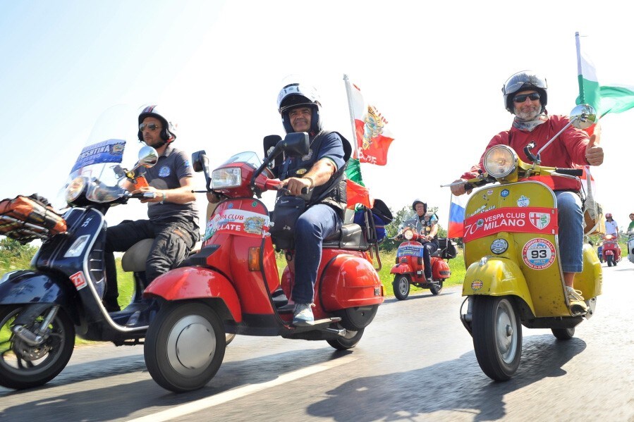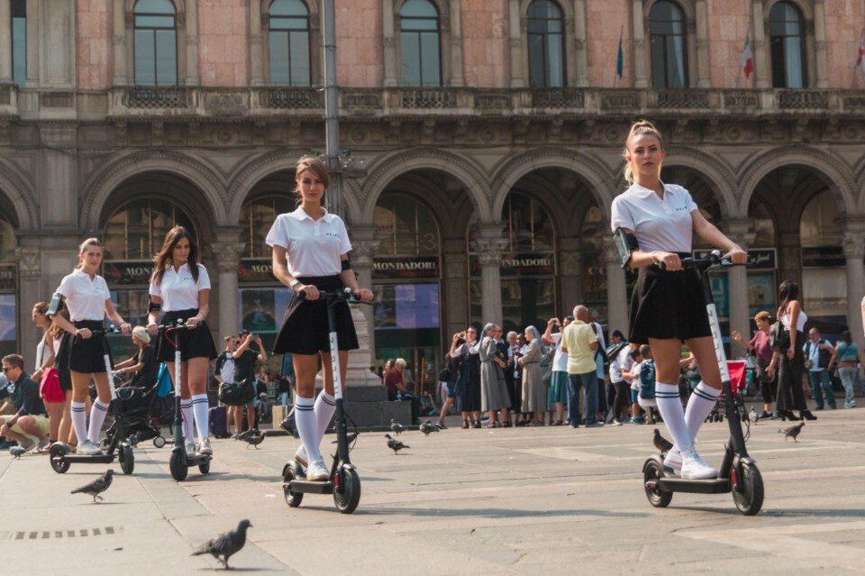 Al nuovo store Vespa di Milano debutta la slitta (trainata da cinque Vespa) che riprende le forme dell'iconico scooter. Ed è possibile anche salirci sopra...