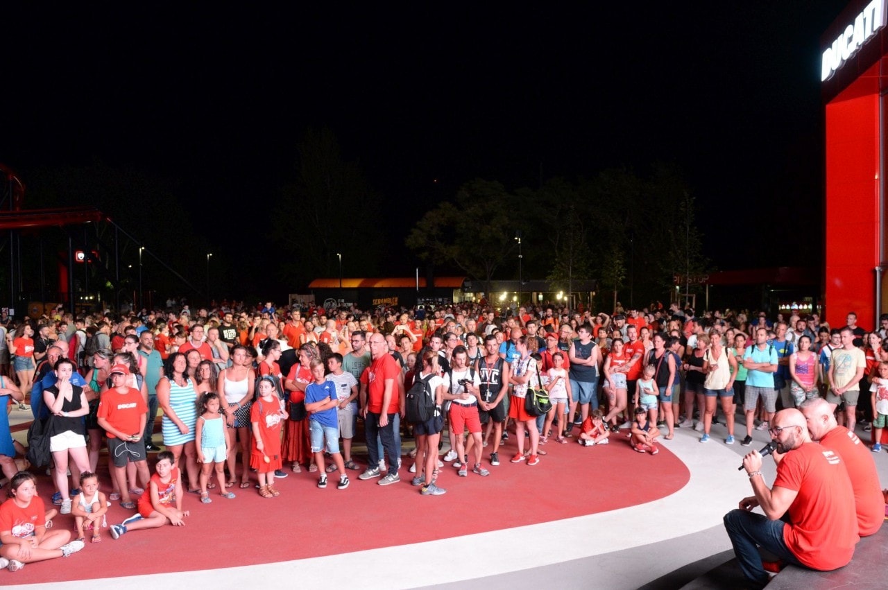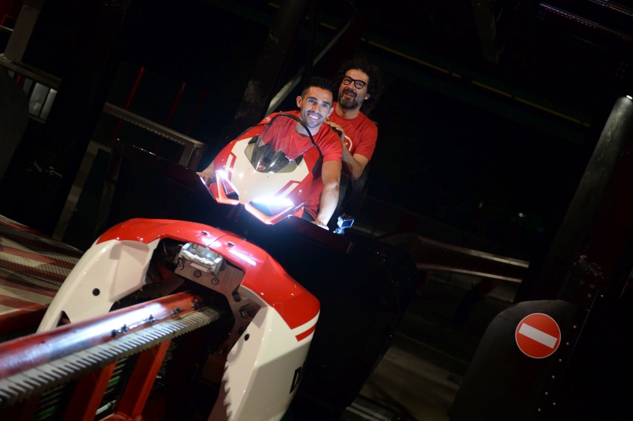 Evento a sorpresa a Ducati World, la nuova area di Mirabilandia dedicata alle Rosse di Borgo Panigale, dove la sera di giovedì 25 luglio ha aperto al pubblico Desmo Race, il primo duelling coaster interattivo a doppio binario. Su questa nuova attrazione, a bordo di una moto biposto che riproduce una Panigale V4, è possibile sfidarsi lungo due tracciati paralleli per una gara testa a testa. Frenata e accelerazione sono nelle mani del guidatore che deve affrontare ogni curva come in sella a una vera moto. Tutti possono provare l’emozione di sentirsi un pilota, unici requisiti: età superiore ai 6 anni e altezza minima 120 cm.