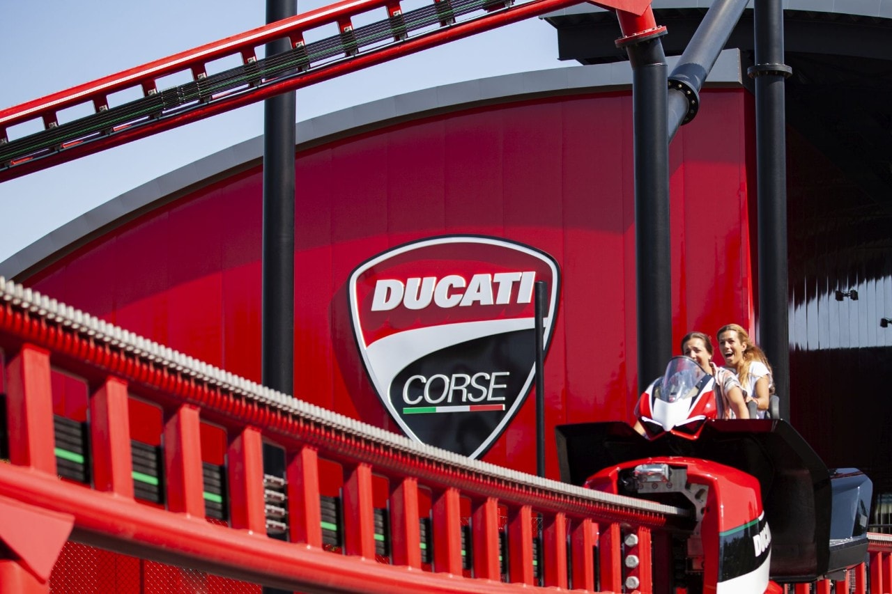 Ducati World è la prima area tematica al mondo ispirata a un brand motociclistico inserita in un parco divertimenti. Desmo Race va ad aggiungersi alle altre attrazioni già operative dell’area tematica del parco, quali Diavel Ring, Kiddy Monster e l’area dell’Experience Building. Quest’ultima è dotata di simulatori di ultima generazione che, utilizzando vere moto Ducati, regalano un’esperienza ultra realistica ed emozionante. Inoltre, dal pomeriggio di venerdì 26 luglio, apre ufficialmente al pubblico anche Scrambler Run, l’attrazione ispirata al mitico Scrambler Ducati, l’iconico brand sinonimo di libertà e divertimento.