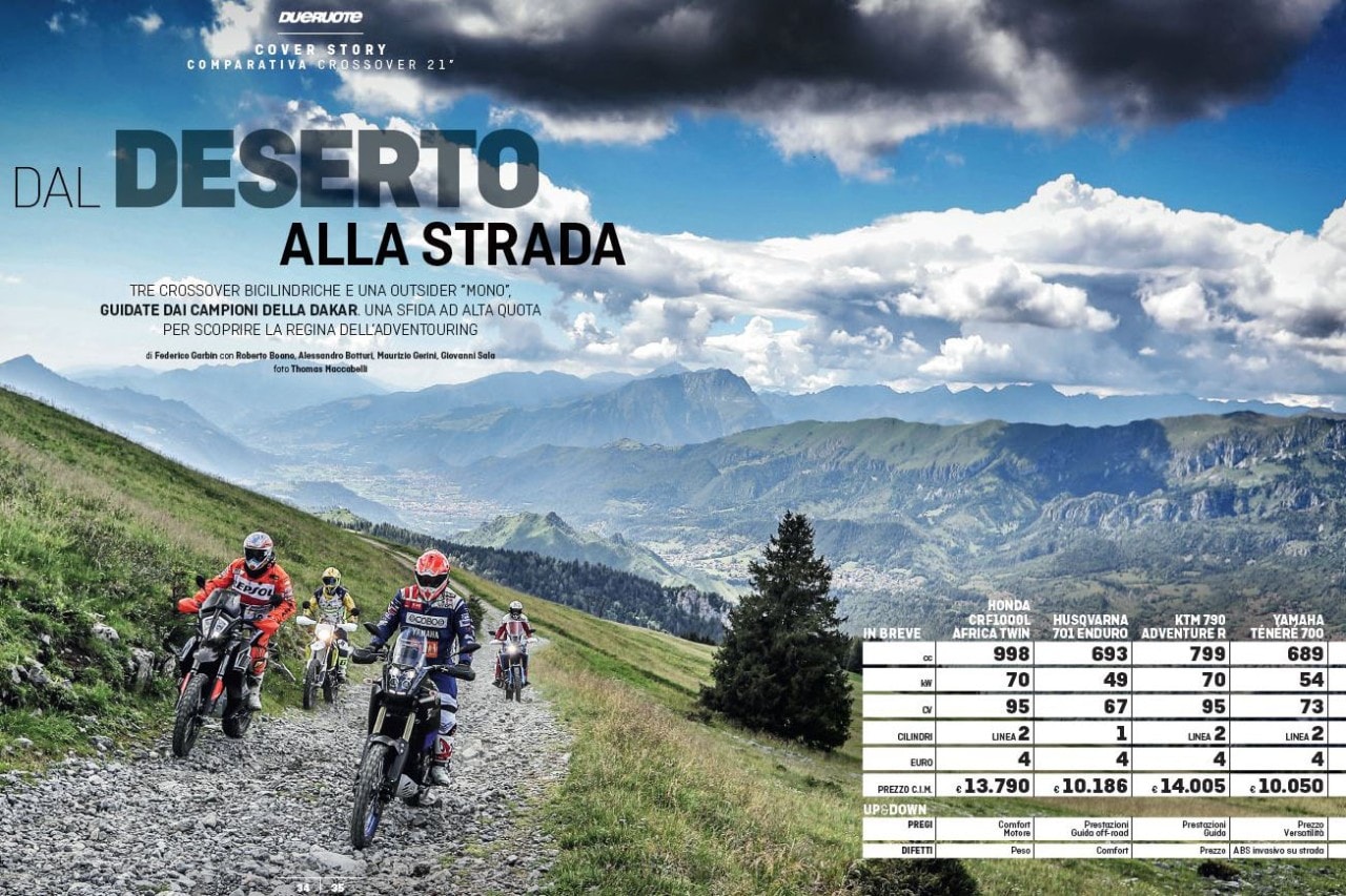 Tre crossover bicilindriche e una outsider “mono”, guidate dai campioni della Dakar. Una sfida ad alta quota per scoprire la regina dell’adventouring