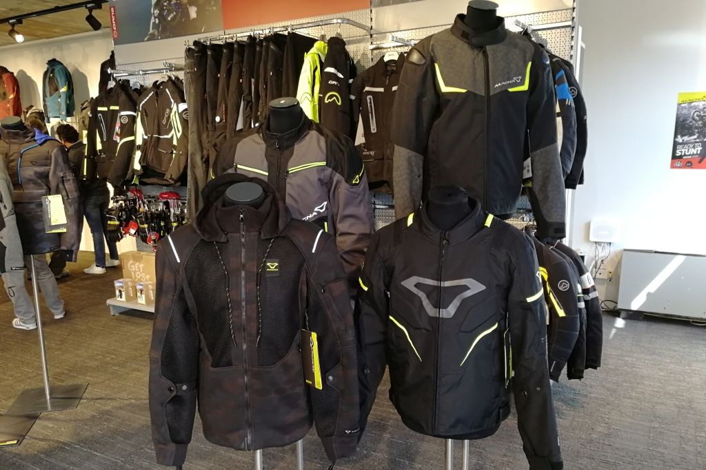 A fare da filo conduttore ai capi in collezione, una serie di accorgimenti tecnici intelligenti. Su tutti, il tessuto con effetto Night-Eye: si tratta di tessuti tecnici che contengono microsfere di vetro le quali, illuminate da una fonte di luce, hanno un effetto riflettente al buio. O come - sempre in tema di sicurezza passiva - la possibilità di installare luci nella parte posteriore dei giubbotti da moto. E infine la costruzione lamellare dei tessuti Air Scoop, che adotta lo stesso principio delle persiane di casa e consente di far traspirare l'aria e bloccare l'acqua. Sul fronte della sicurezza, colpisce la ricercatezza costruttiva di alcune protezioni, come il chest protector (per il torace) che equipaggia la gamma di giacche stradali.