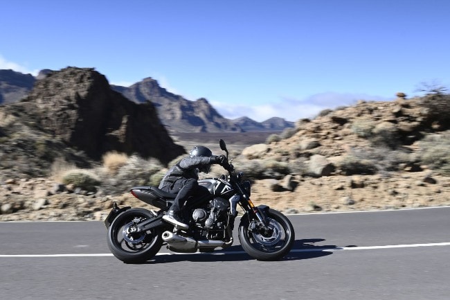 La Triumph Trident 660, Stefano Gaeta alla guida e il paessaggio vulcanico di Tenerife