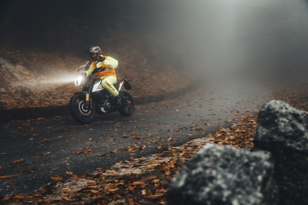 Il primo assaggio della “experience” è denominato “warm-up”: in sella alle nostre moto, gli istruttori ci hanno accompagnato in un susseguirsi di curve e valli nella sponda del Verbano-Cusio-Ossola sul lago D’Orta. In questa occasione ho apprezzato la maneggevolezza e la leggerezza della KTM 790 Adventure. Sul bagnato si distingue per il comportamento docile e allo stesso tempo spassoso. Gli aiuti elettronici sono gli stessi delle moto “da grandi”, difatti, troviamo le mappe anche sull’ABS e sul controllo di trazione. Il telaio è preciso e la posizione di guida molto confortevole, sebbene la sella sia risultata un po’ troppo rigida, ma questo particolare, secondario, non ha impedito di innamorarmi dell’austriaca tuttofare. Ero molto scettica sulle medie cilindrate, avendo negli ultimi anni sempre optato per cubature oltre i 1000 cc, ma la 790 Adventure si è rivelata per me una lieta scoperta! Le Pirelli Scorpion Rally STR con cui è stata equipaggiata, mi hanno donato una totale percezione dell’asfalto, facendomi dimenticare il timore di aquaplaning o delle foglie viscide di stagione: tutto ciò, unito all’assenza di vibrazioni - nonostante un battistrada semi-tassellato - hanno reso la guida un vero piacere.