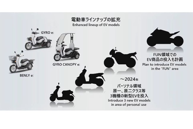 Insediato ufficialmente da poco più di un mese, il nuovo ceo di Honda Il Toshihiro Mibe di recente ha anticipato i piani per l'elettrificazione delle moto della Casa giapponese. Che ha già in gamma - limitatamente ad alcuni mercati asiatici - modelli a propulsione elettrica o ibrida. Da un lato è diffuso il PCX in entrambe le versioni, mentre sul fronte del delivery Honda è presente con tre modelli elettrificati, vale a dire il Benly, il Gyro e il Gyro Canopy.