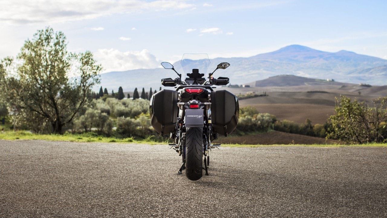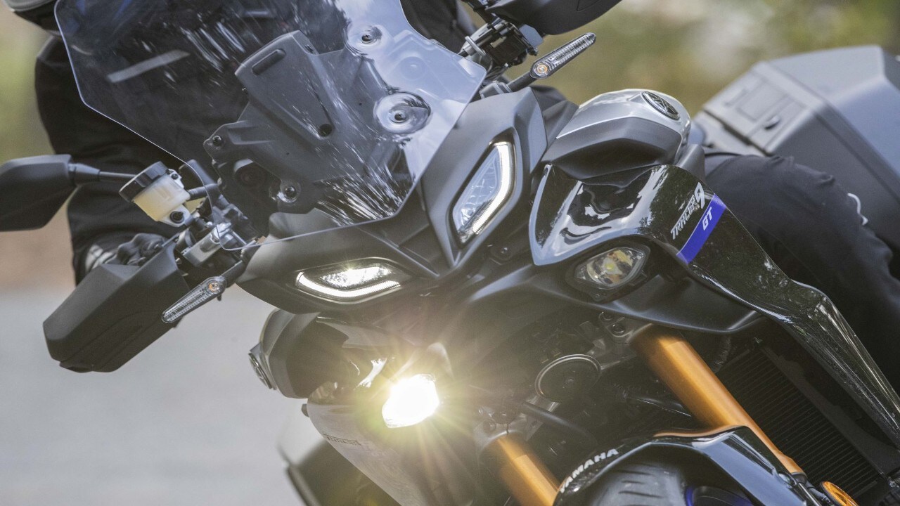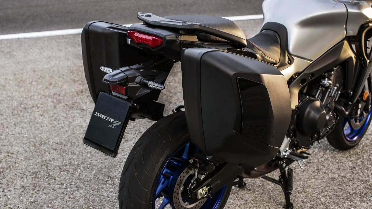 SULLA YAMAHA TRACER 9 GT SONO DI SERIE LA COPPIA DI BORSE DA 30 LITRI, IL QUICKSHIFTER, LE MANOPOLE RISCALDABILI, LE LUCI A LED CON FUNZIONE CORNERING E LE SOSPENSIONI KYB A CONTROLLO ELETTRONICO