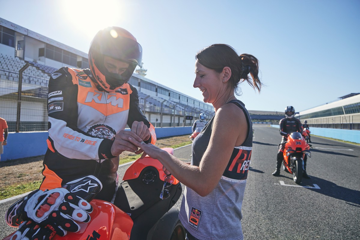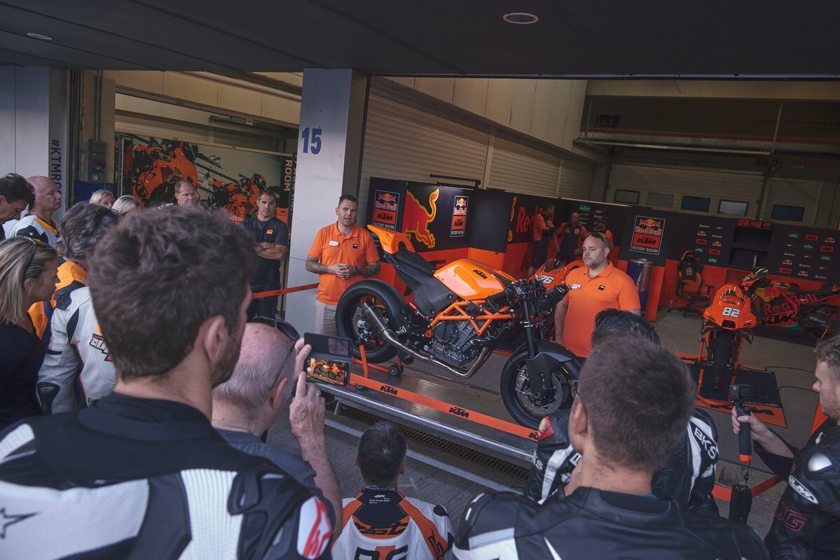 Dopo che lo staff di KTM ha fornito a ogni cliente una dettagliata presentazione della KTM RC 8C, i piloti hanno ricevuto un briefing tecnico da Mika e Dani, che hanno dato il via alla giornata in pista.