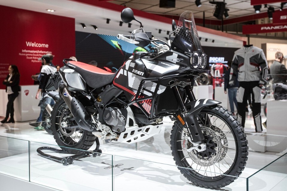 Per gli appassionati della ruota anteriore da 21” la DesertX si presenta in anteprima per il pubblico di EICMA con la nuova livrea "RR22", ispirata a quella dell’Audi RS Q e-tron che ha partecipato all’ultima Dakar e che affiancherà nelle concessionarie Ducati la colorazione Matt Star White Silk.