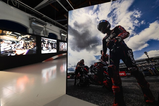 Accanto alle foto, elemento essenziale del racconto, è esposta la Aprilia RS-GP 2023 un oggetto unico al mondo, gioiello di straordinaria raffinatezza e avanguardia tecnologica, che nel campo della aerodinamica ha dettato le linee di sviluppo a tutto il campionato. Si tratta del prototipo che, condotto in gara dai piloti Aleix Espargaró e Maverick Viñales, ha colto tre vittorie, dodici podi e tre pole position negli ultimi anni. L’esemplare, eccezionalmente esposto al pubblico, è la stessa moto con la quale Aleix Espargaró ha vinto i più recenti GP di Inghilterra e Catalunya, sulle leggendarie piste di Silverstone e Montmeló.