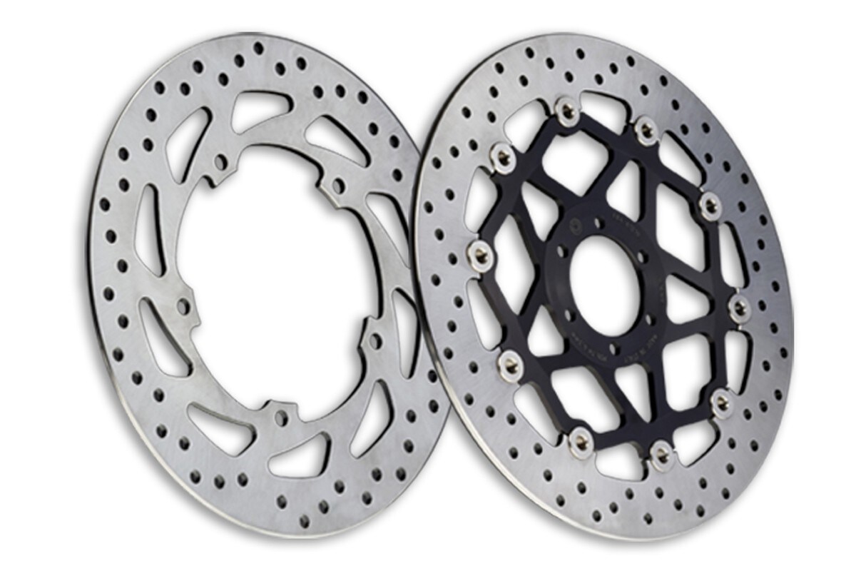 I Flottanti hanno la fascia frenante in acciaio Inox collegata attraverso dei nottolini di trascinamento alla campana realizzata in lega di alluminio, lavorata CNC e successivamente anodizzata.