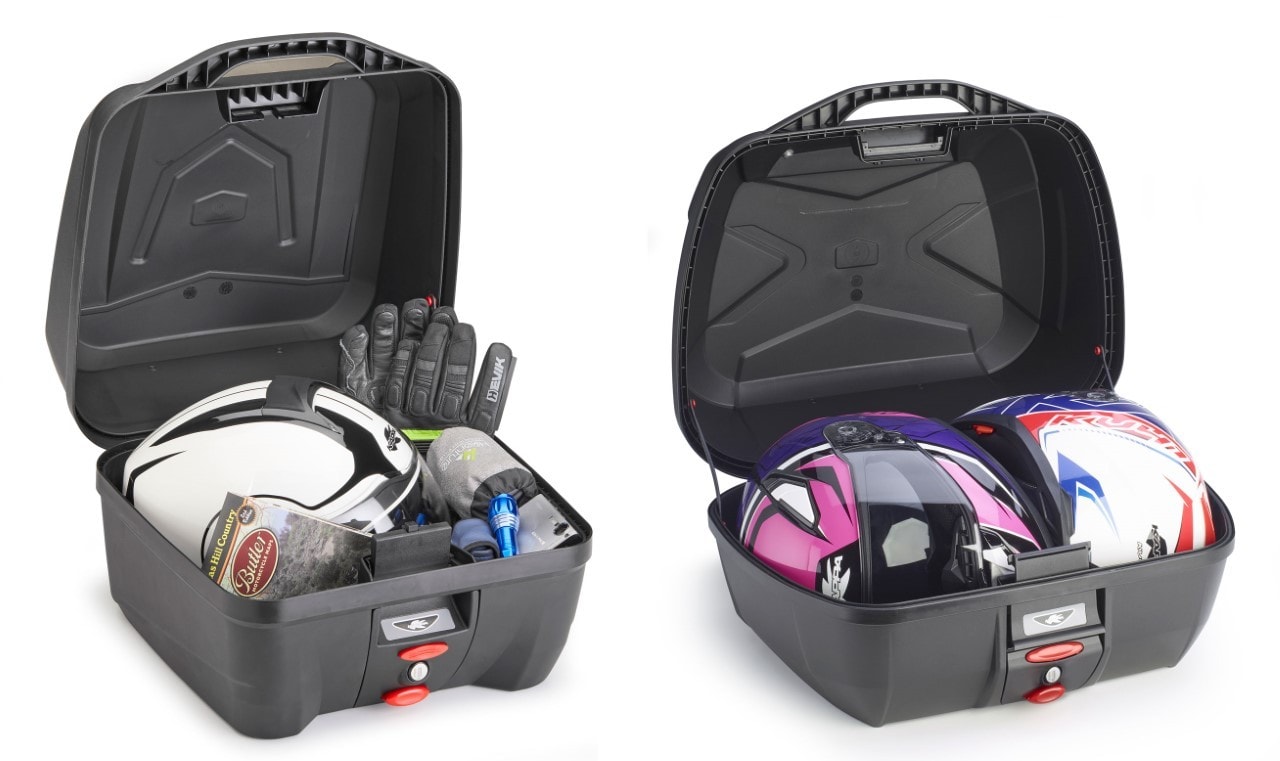 Kappa presenta due bauletti dal look decisamente fuori dagli schemi, con una capienza di 32 e 43 litri. Sono caratterizzati da una particolare forma squadrata e da finiture eleganti e contemporanee. La versione da 43 litri, ha lo schienalino di serie